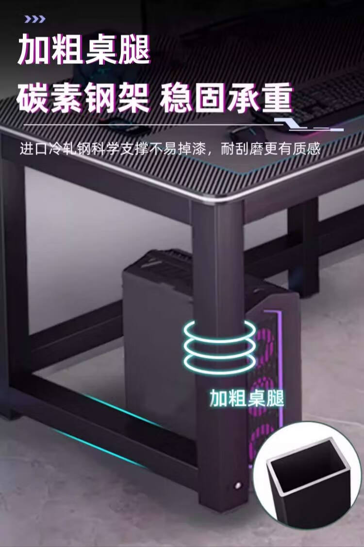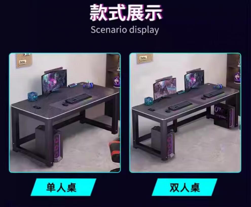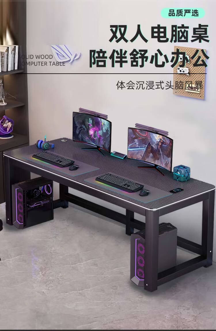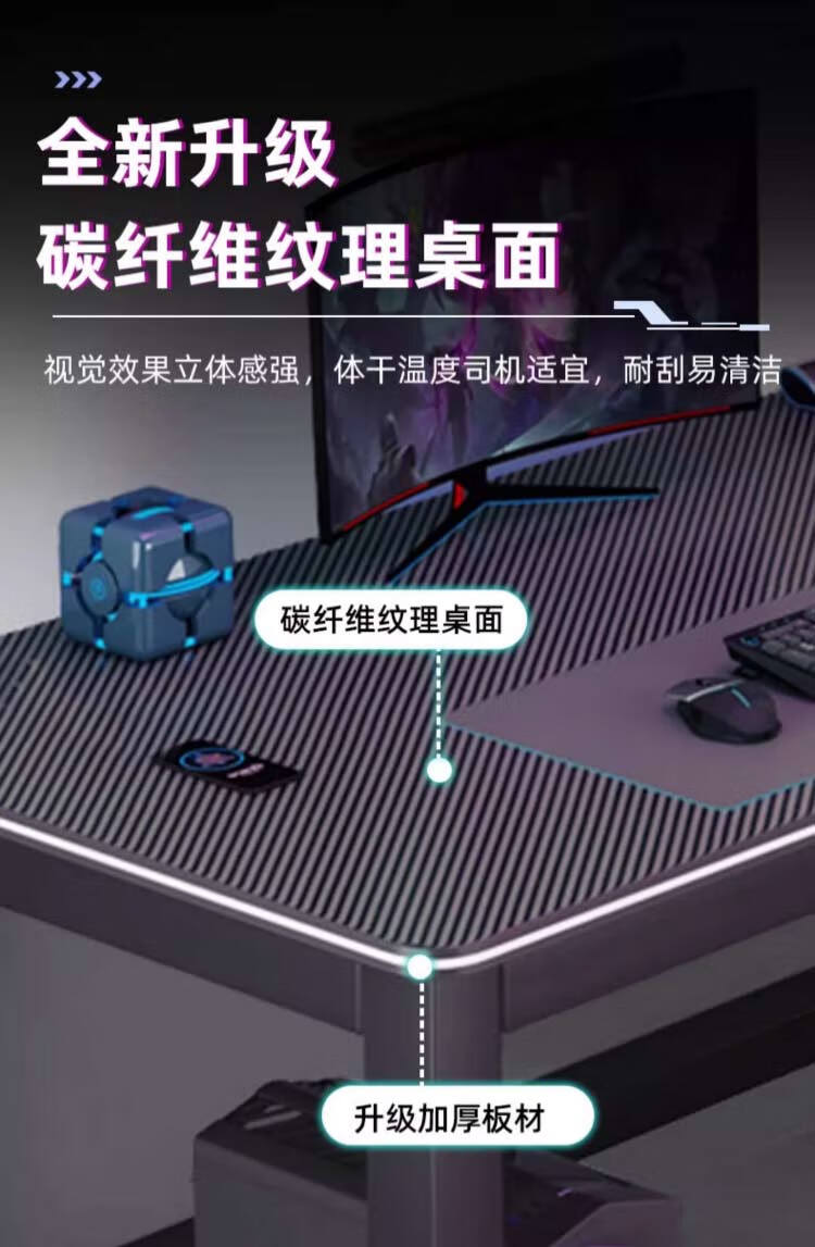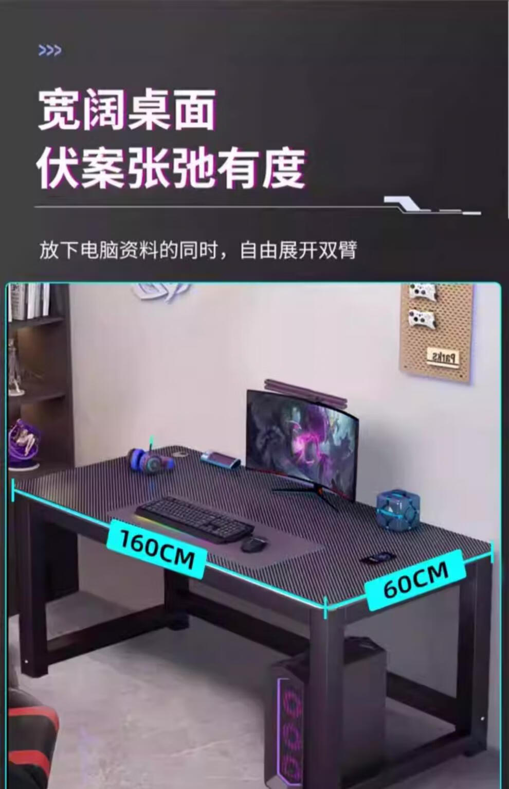 何佳功电脑桌台式卧室家用书桌游戏桌简易出租房用碳纤维纹双人电竞桌子 单人桌90*60*74【双穿线孔+碳纤