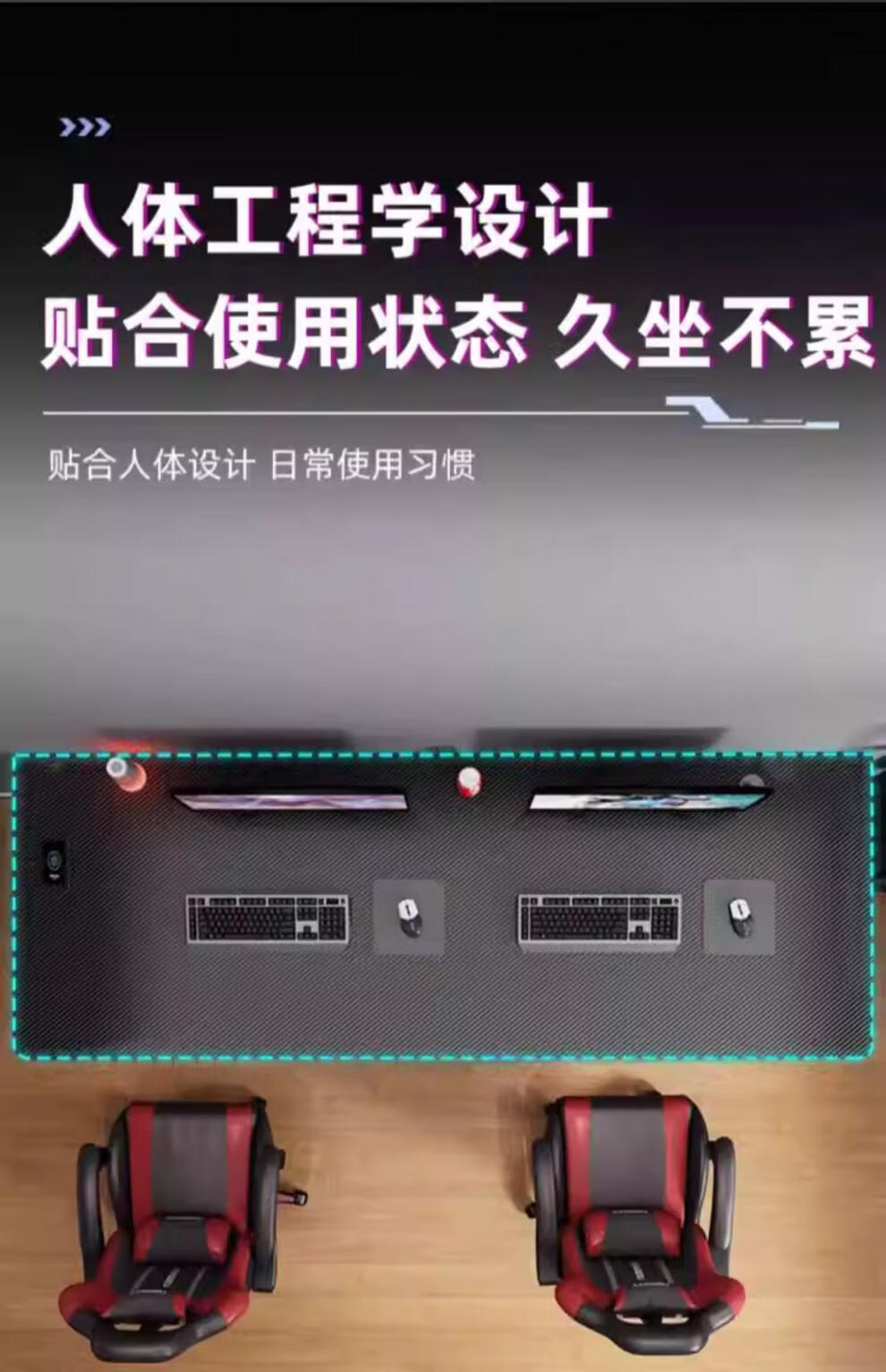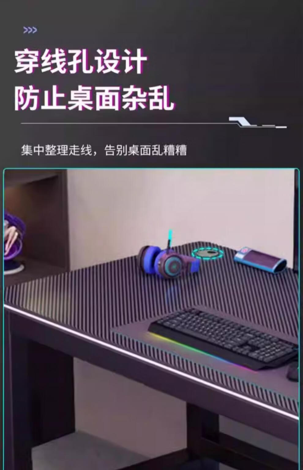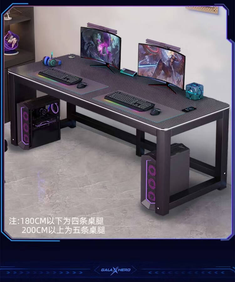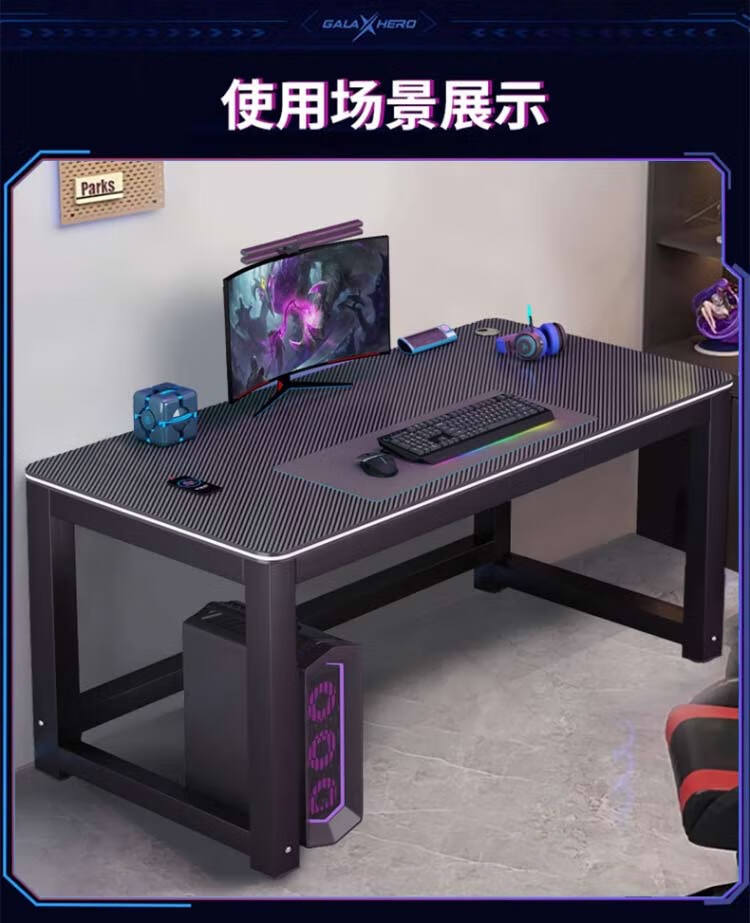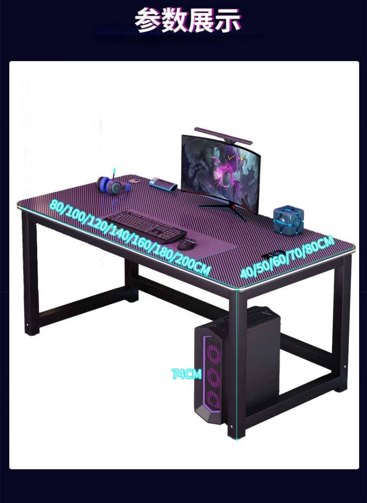 何佳功电脑桌台式卧室家用书桌游戏桌简易出租房用碳纤维纹双人电竞桌子 单人桌90*60*74【双穿线孔+碳纤