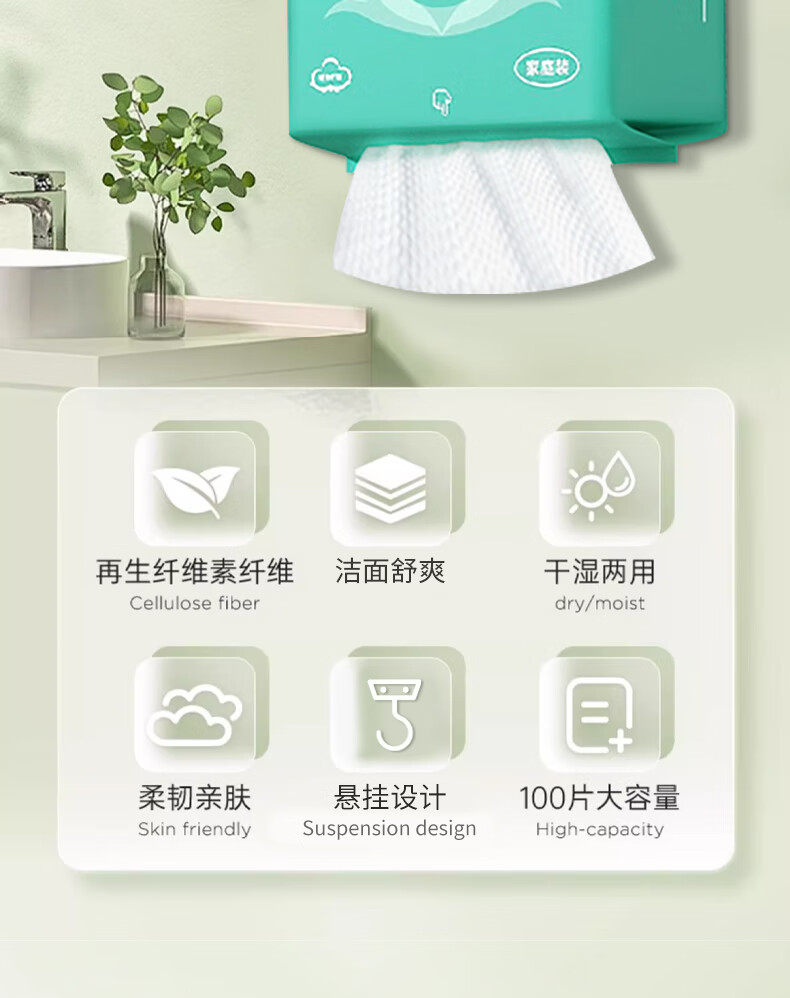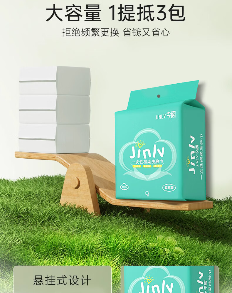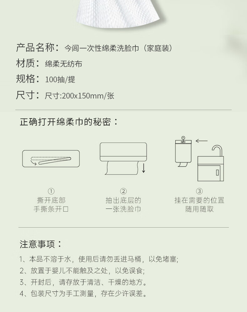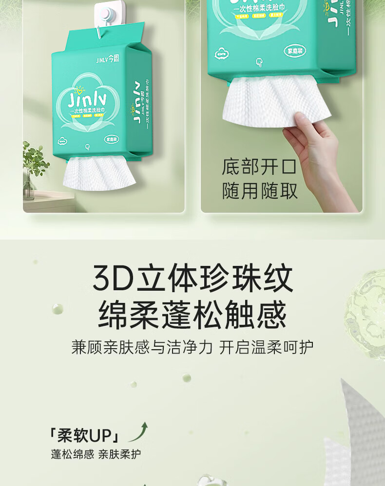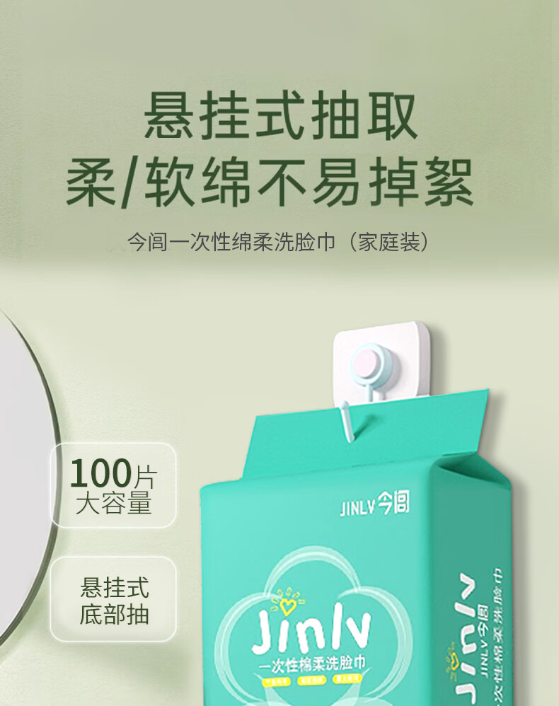 今闾壁挂式洗面巾一次性绵柔洗脸巾洁面巾擦脸巾珍珠纹面巾纸 常规款 100抽 壁挂式洗脸巾2袋