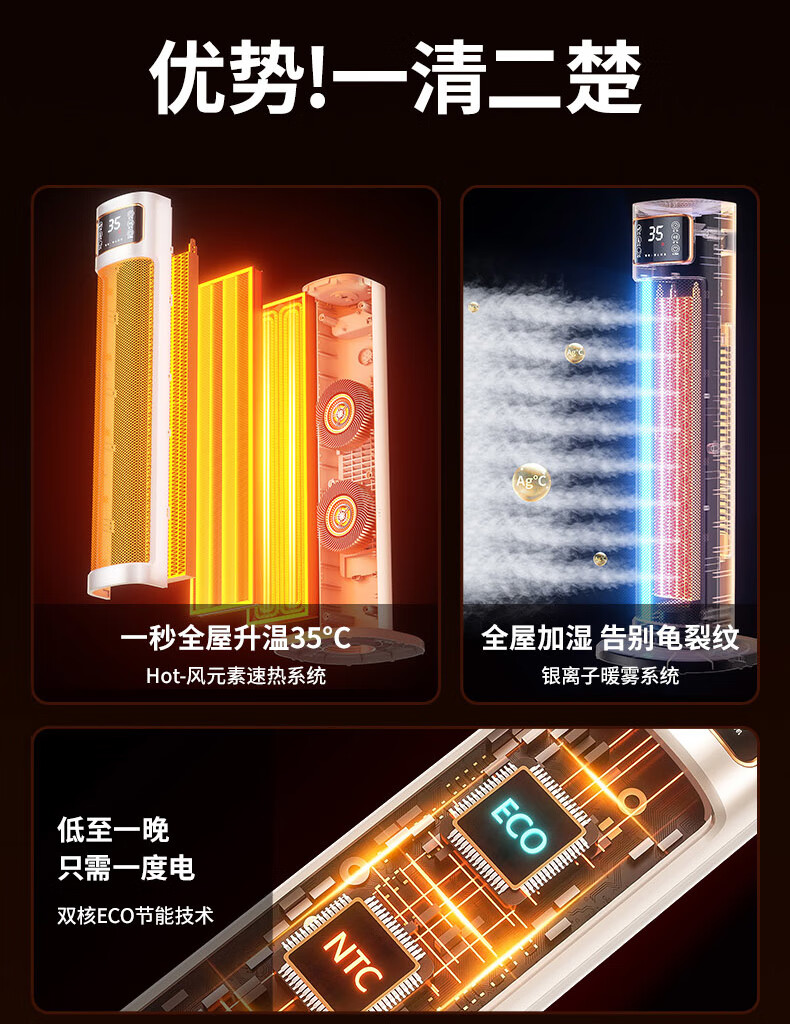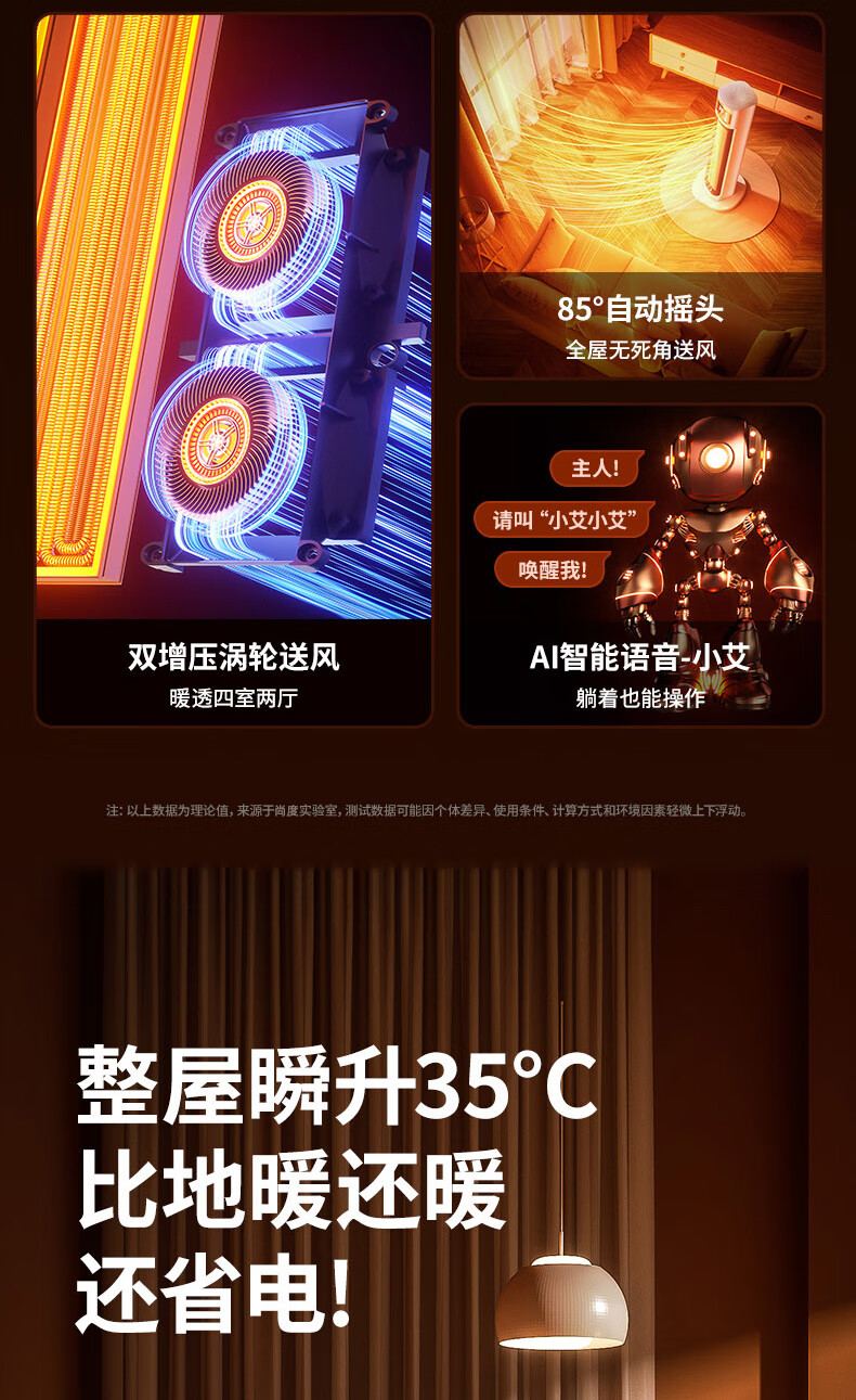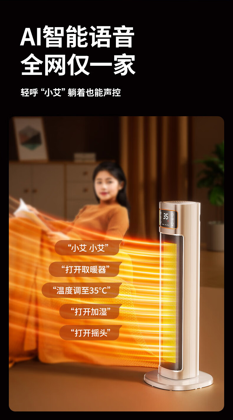 志高暖风机电暖气取暖器家用节能速热风机浴室洗澡石墨烯全屋取暖神器 壁炉加湿语音