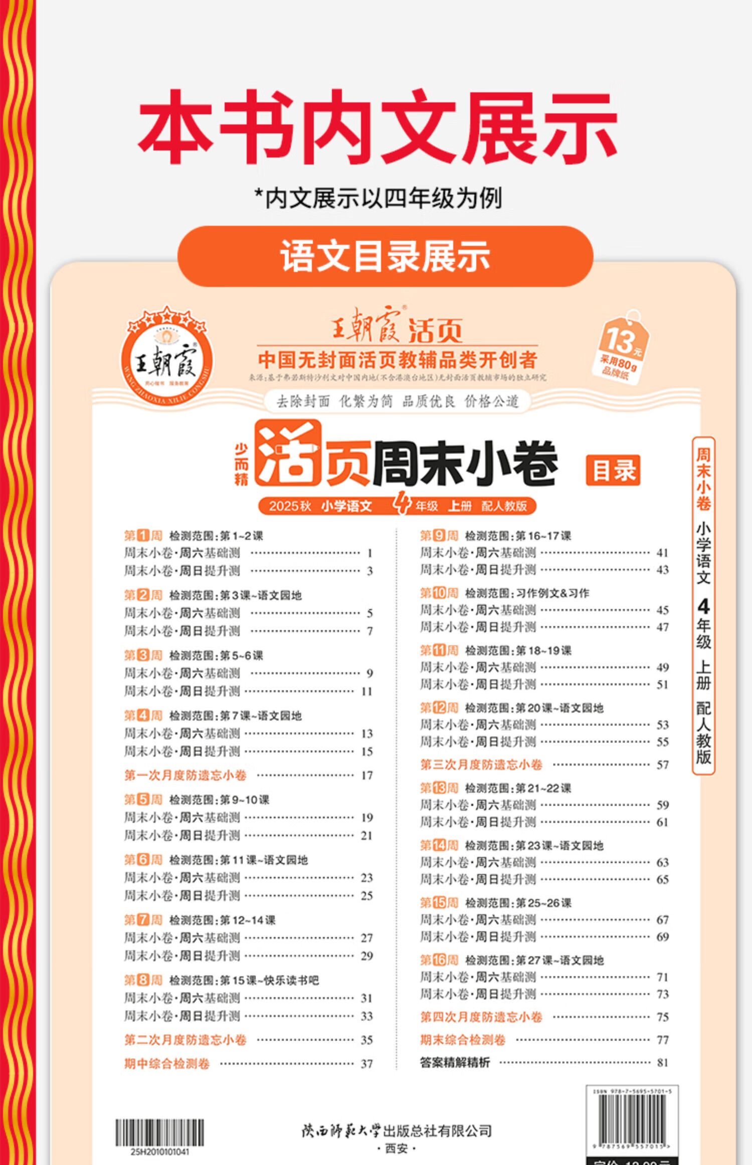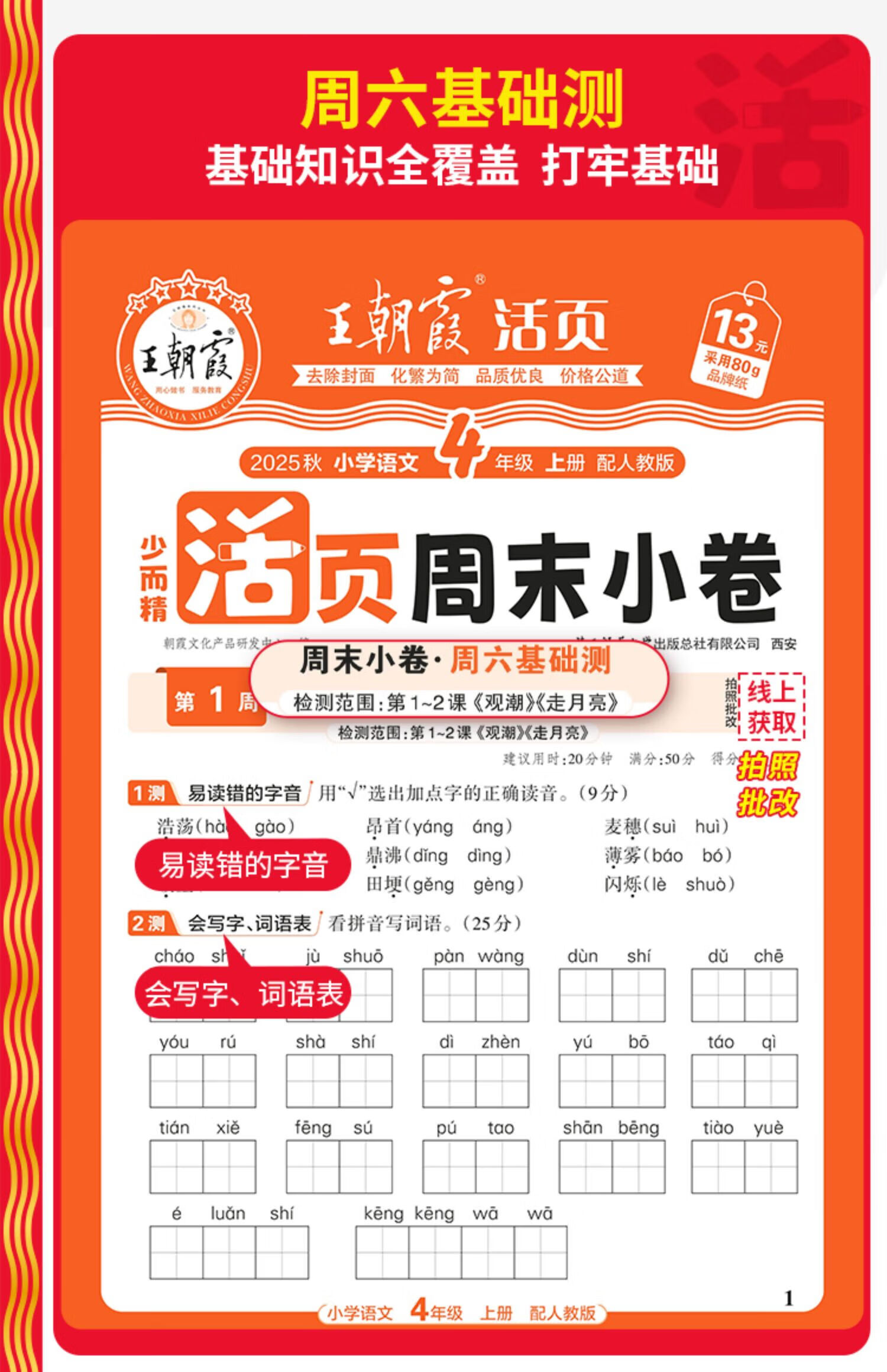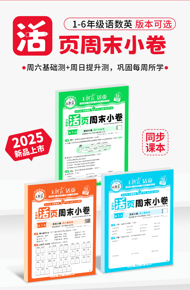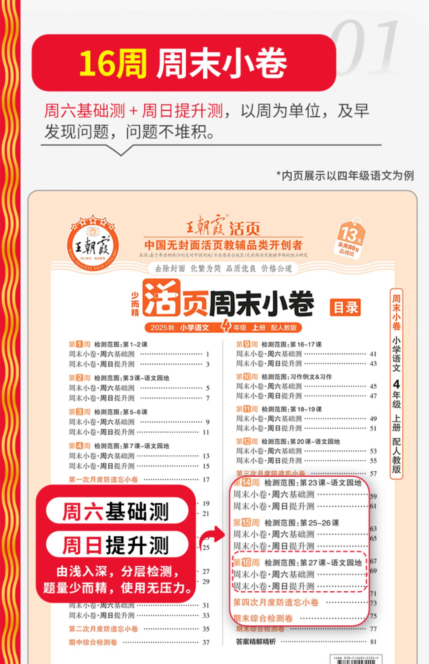 【当日发】2025秋季王朝霞活页周末小卷一二三四五六年级上册语文数学英语活页周末小测卷周周测巩固知识点人教版北师版苏教版同步试卷小学123456上王朝霞活页单元检测培优试期卷期中期末试卷 一年级上册
