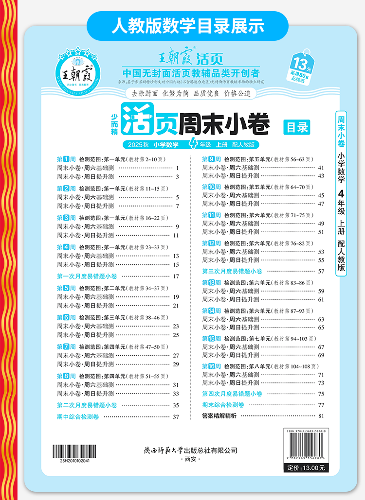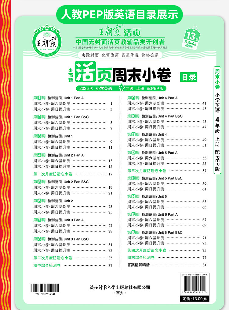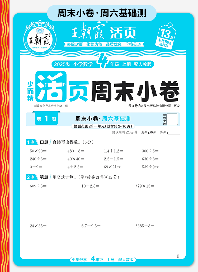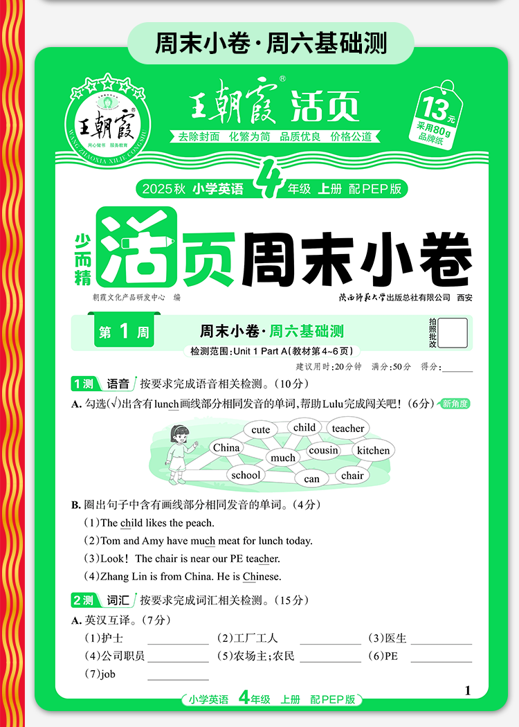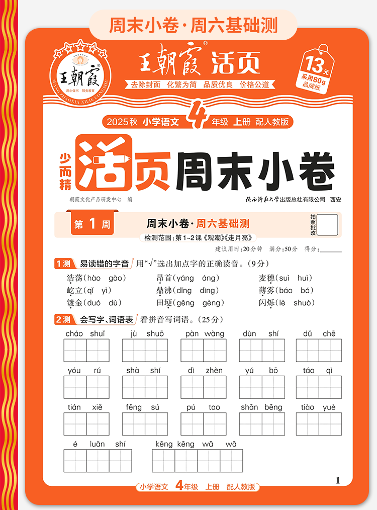 【当日发】2025秋季王朝霞活页周末小卷一二三四五六年级上册语文数学英语活页周末小测卷周周测巩固知识点人教版北师版苏教版同步试卷小学123456上王朝霞活页单元检测培优试期卷期中期末试卷 一年级上册