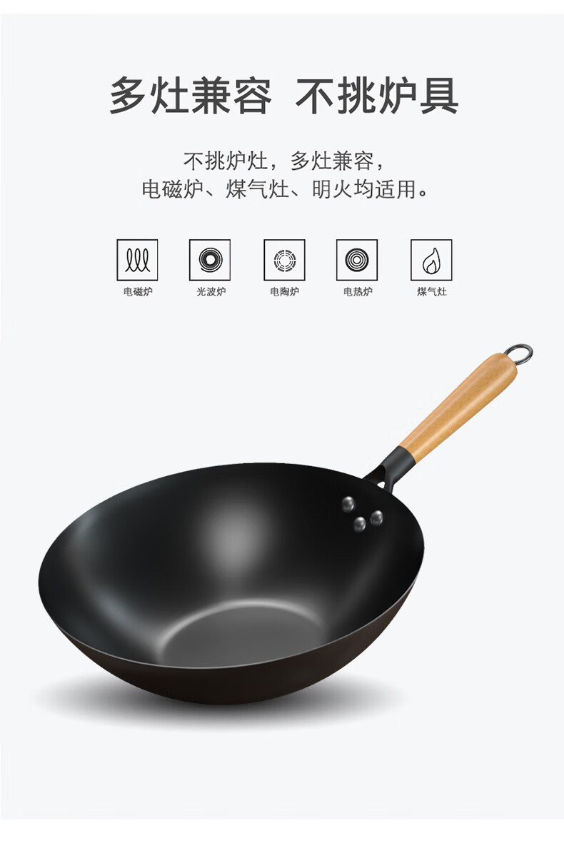 舌尖上的匠人老式平底炒锅家用炒菜锅无涂层不粘锅燃气灶电磁炉通用 32cm平底锅(无盖子)3-9人使用