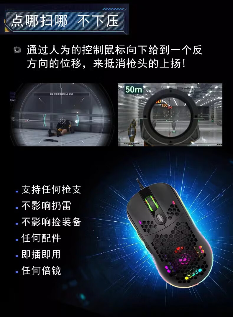 绝地求生usb芯片辅助科技1个点无后坐自动识别pubg鼠标宏网吧通用 鼠标【一键激活/免调试】