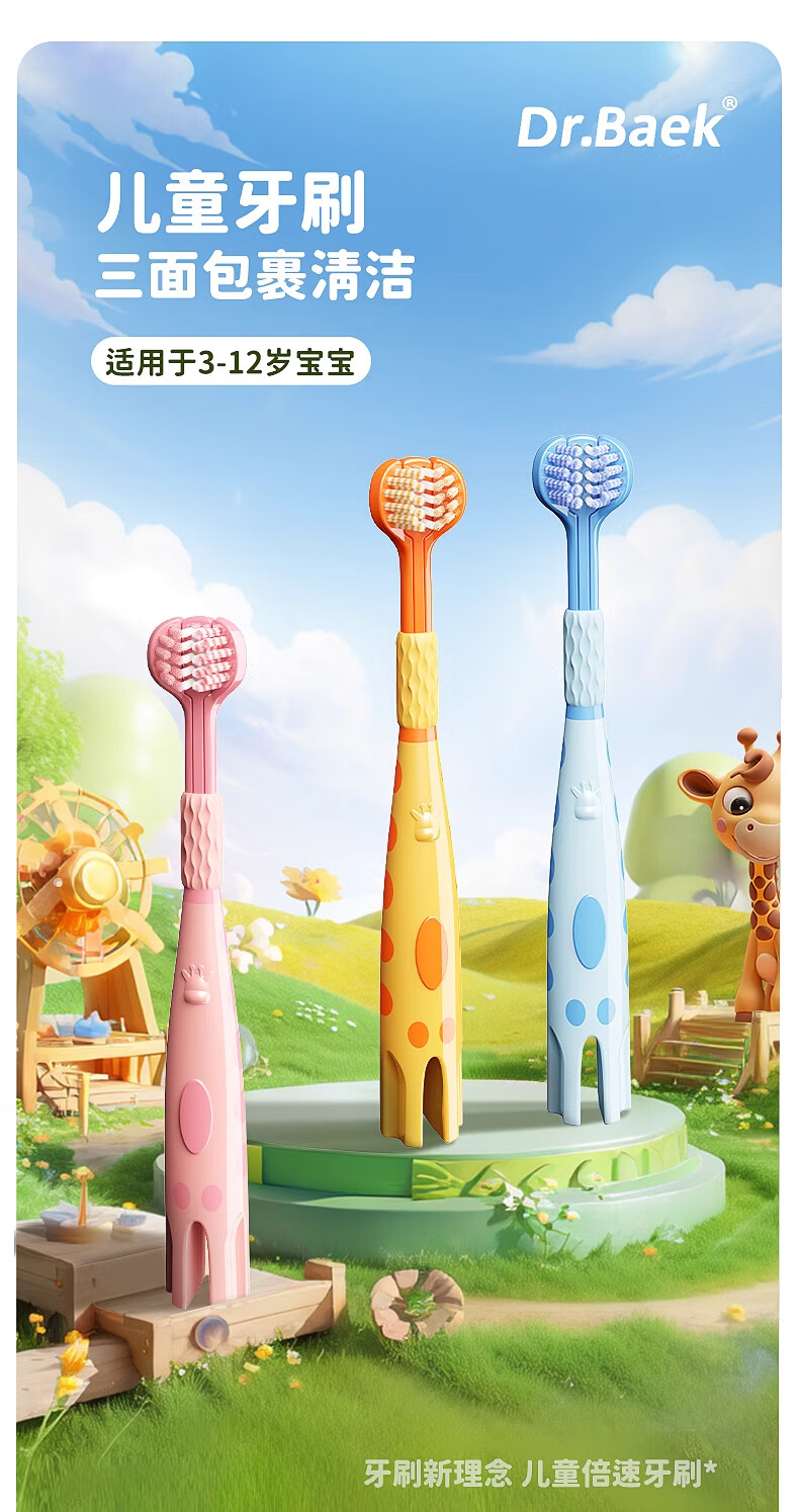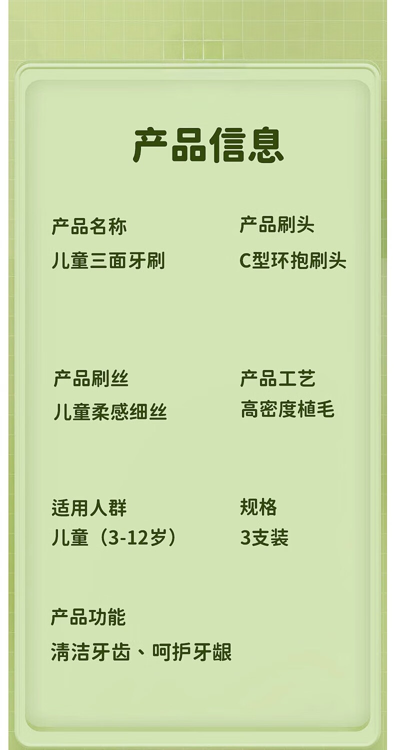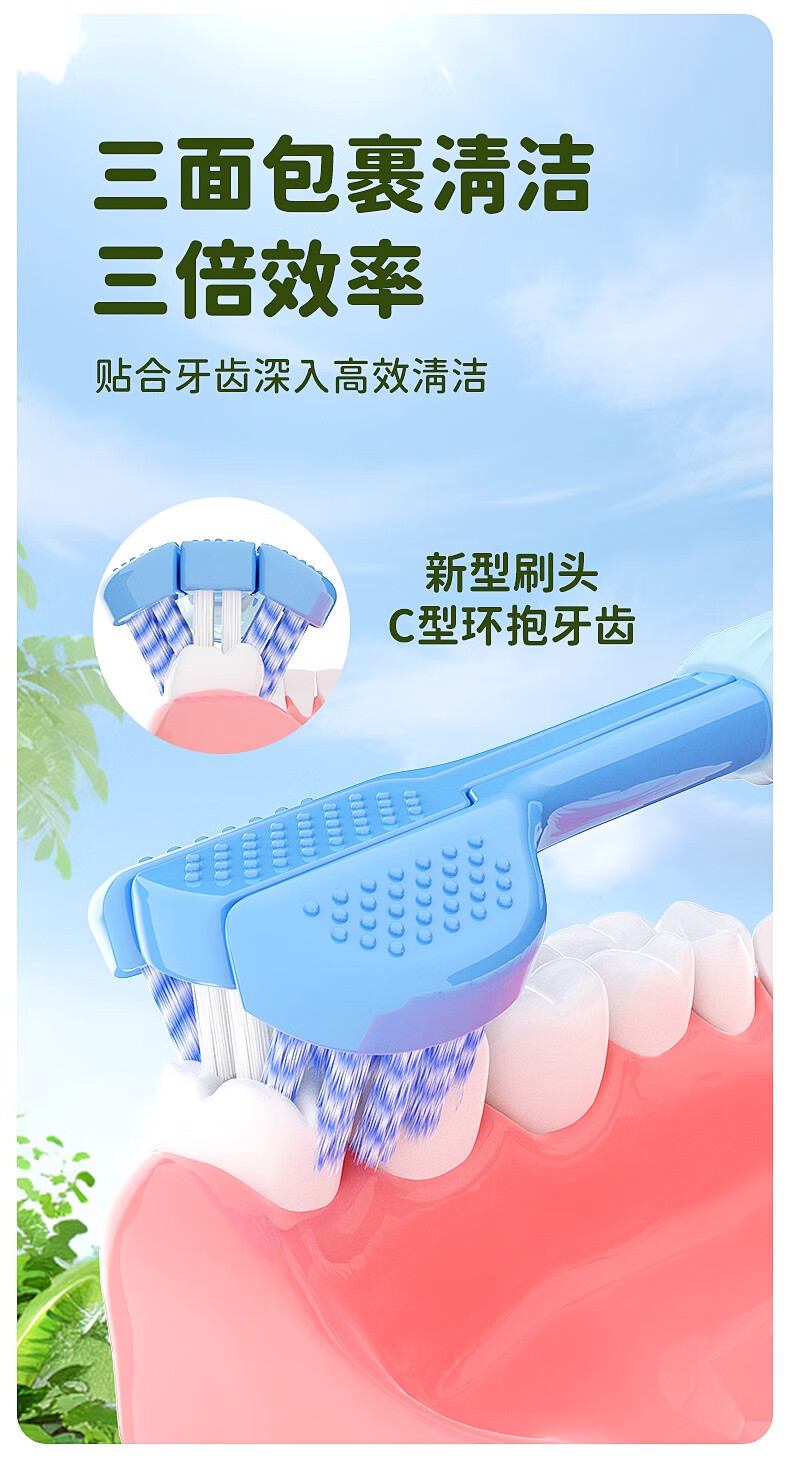 戴可小鹿儿童三面牙刷软毛3到6一12岁换牙期U型护齿牙刷 儿童牙刷1卡 3支