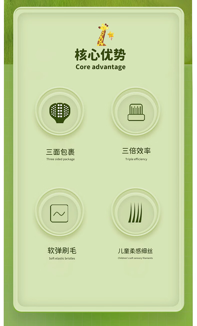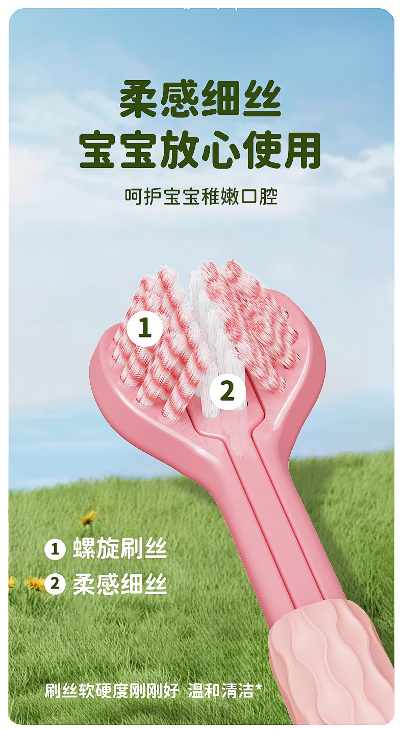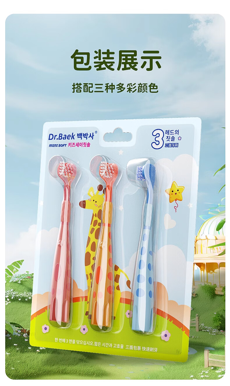 戴可小鹿儿童三面牙刷软毛3到6一12岁换牙期U型护齿牙刷 儿童牙刷1卡 3支
