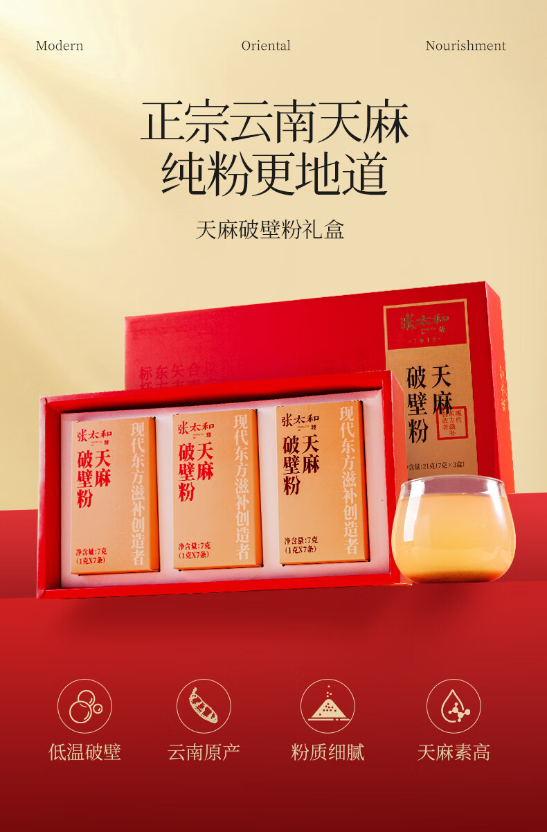 张太和天麻破壁粉礼盒 破壁粉即冲即饮 粉质细腻泡水 礼盒礼品 天麻破壁粉礼盒21g(7g*3盒)送礼袋