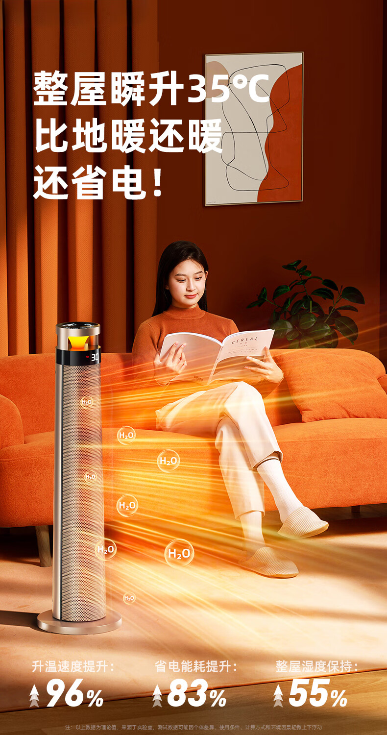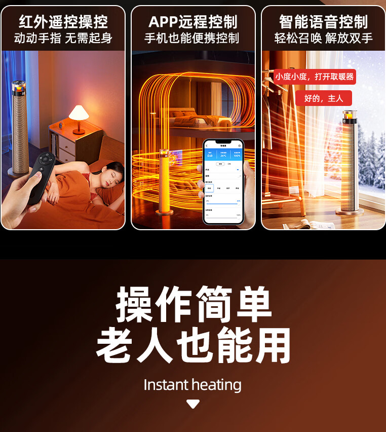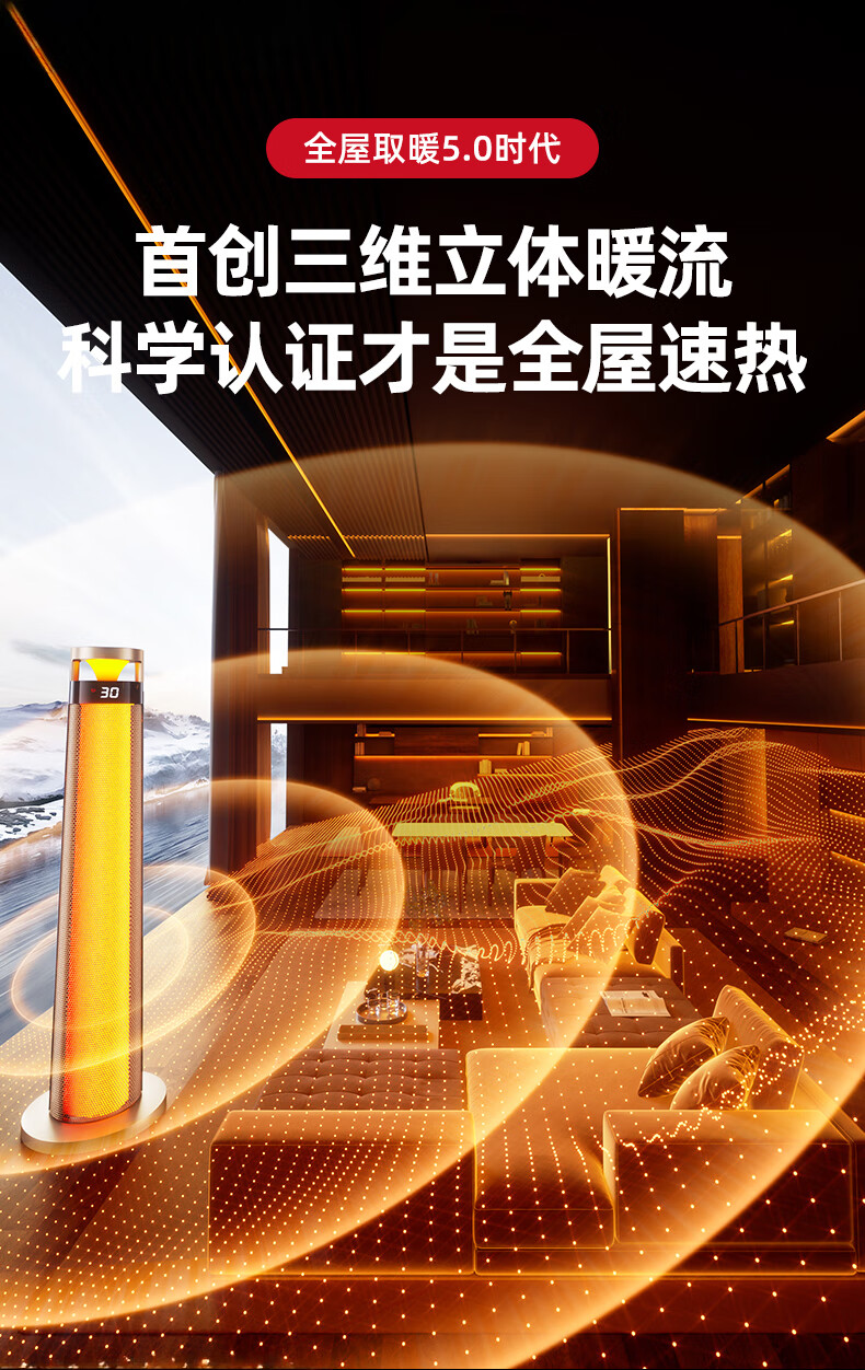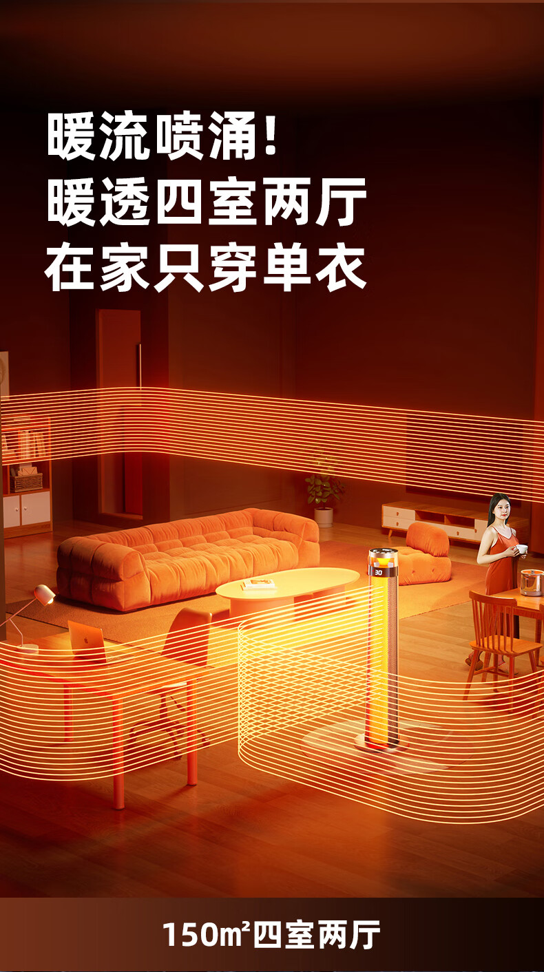 尚度节能省电王·大面积速热100平方丨电热取暖器暖风机全屋电暖气家用升温客厅浴室油汀石墨烯小太阳 基础版【氛围AI语音智能遥控】双核石墨烯发热