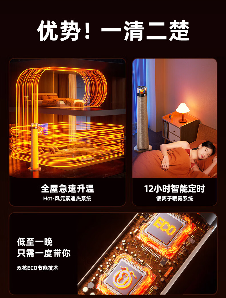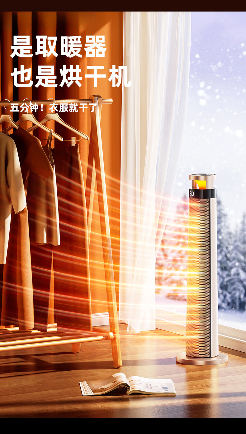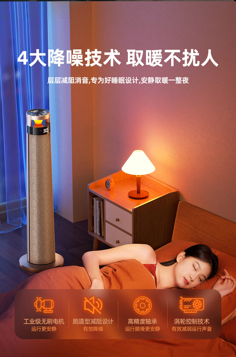尚度节能省电王·大面积速热100平方丨电热取暖器暖风机全屋电暖气家用升温客厅浴室油汀石墨烯小太阳 基础版【氛围AI语音智能遥控】双核石墨烯发热