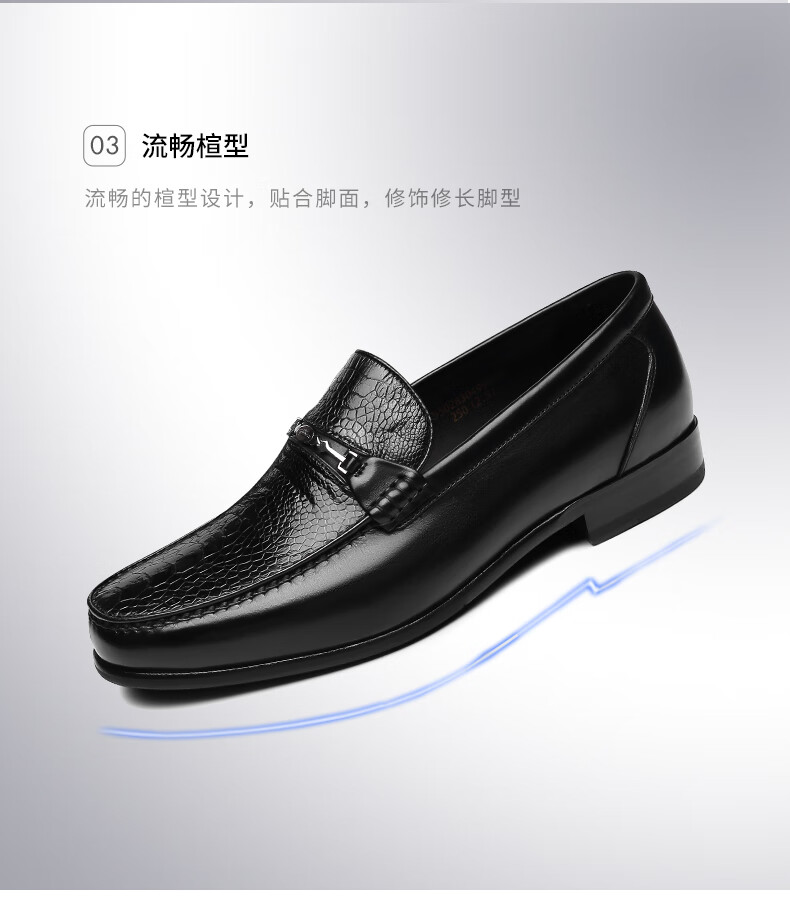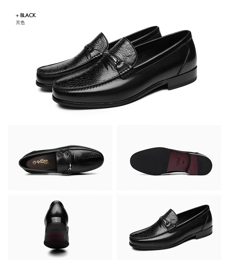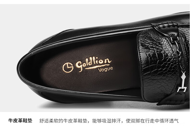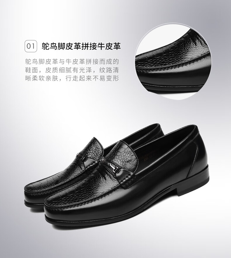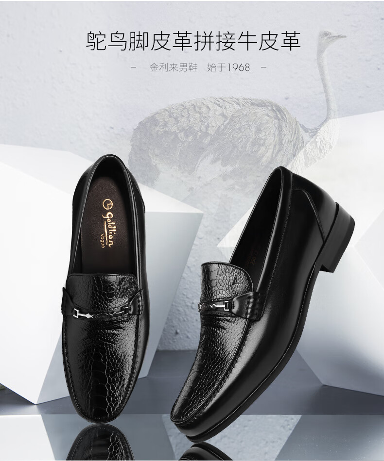 金利来(Goldlion)男鞋轻奢商务正装皮鞋鸵鸟皮革拼接牛皮革套脚乐福鞋男士皮鞋 黑色 43