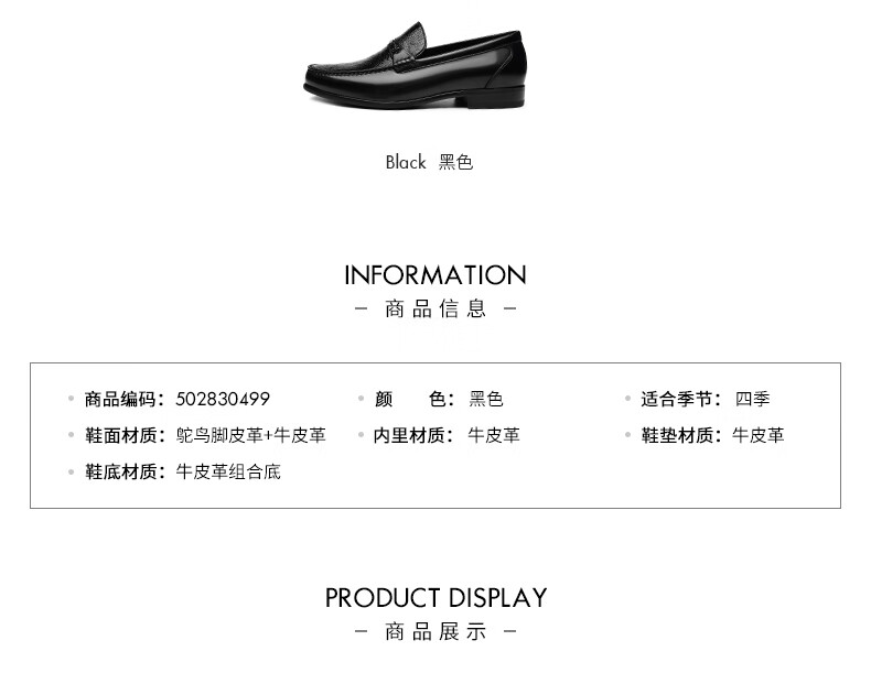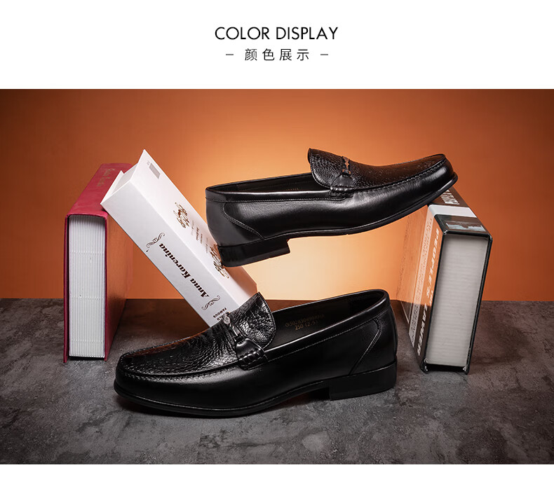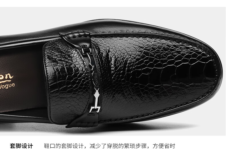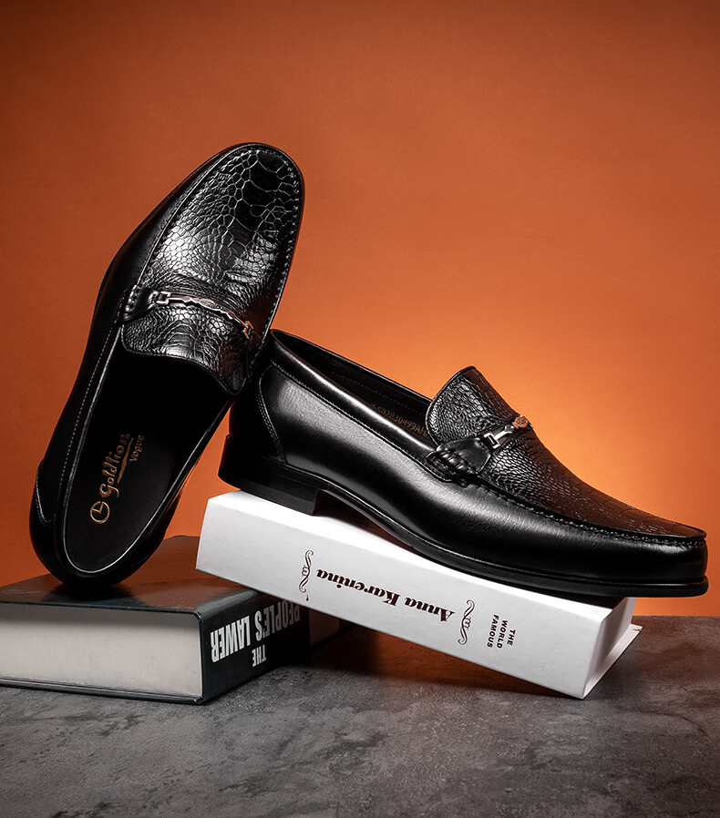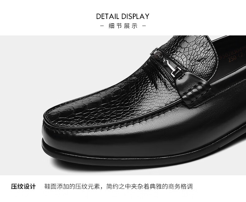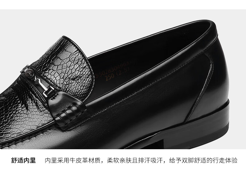 金利来(Goldlion)男鞋轻奢商务正装皮鞋鸵鸟皮革拼接牛皮革套脚乐福鞋男士皮鞋 黑色 43