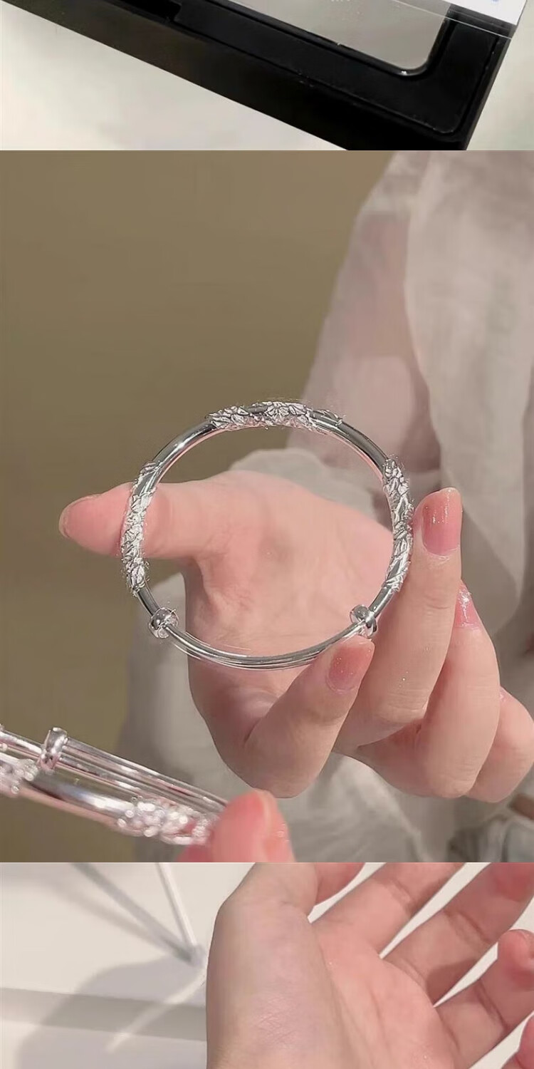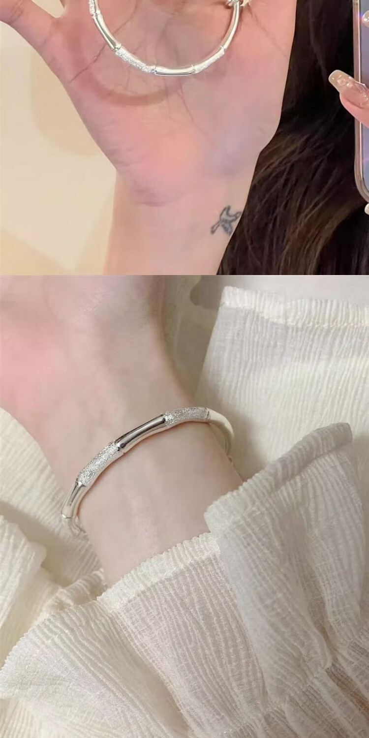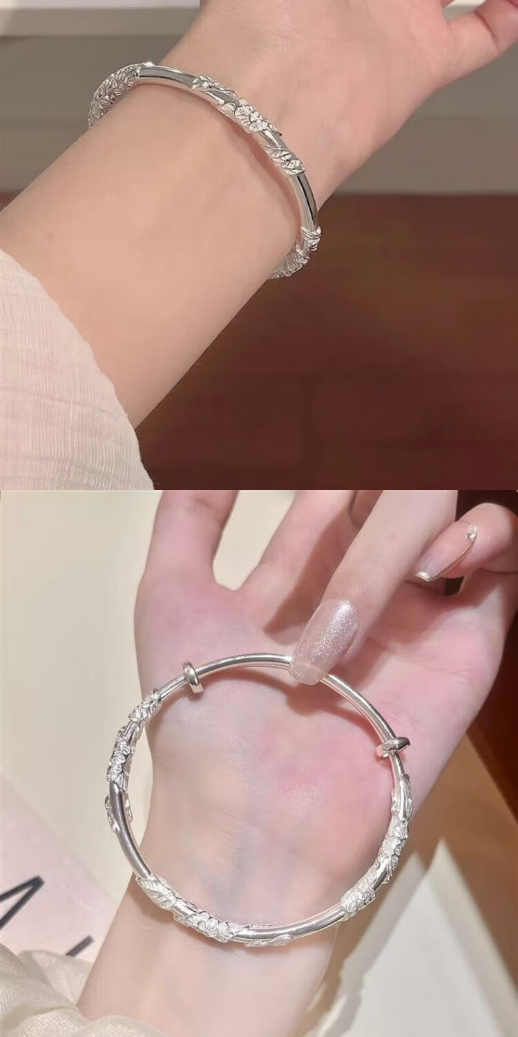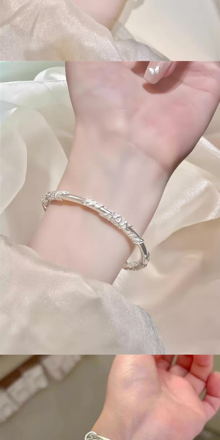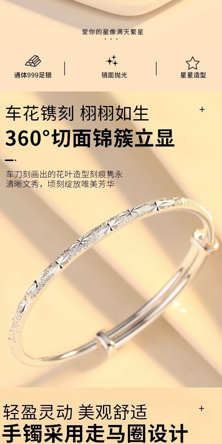 老凰祥纯银手镯女繁花似锦9999实心足银镯子年轻款送女友生日礼物 30克 磨砂竹节银手镯 【附带证书