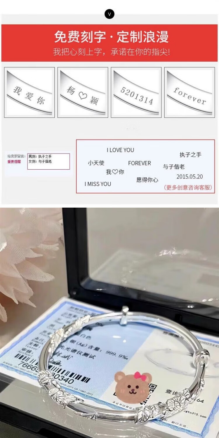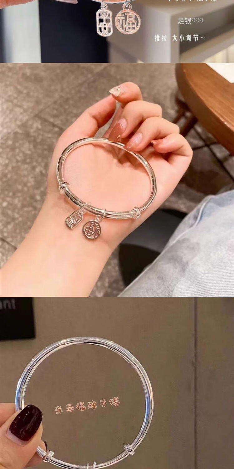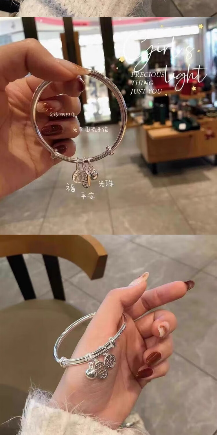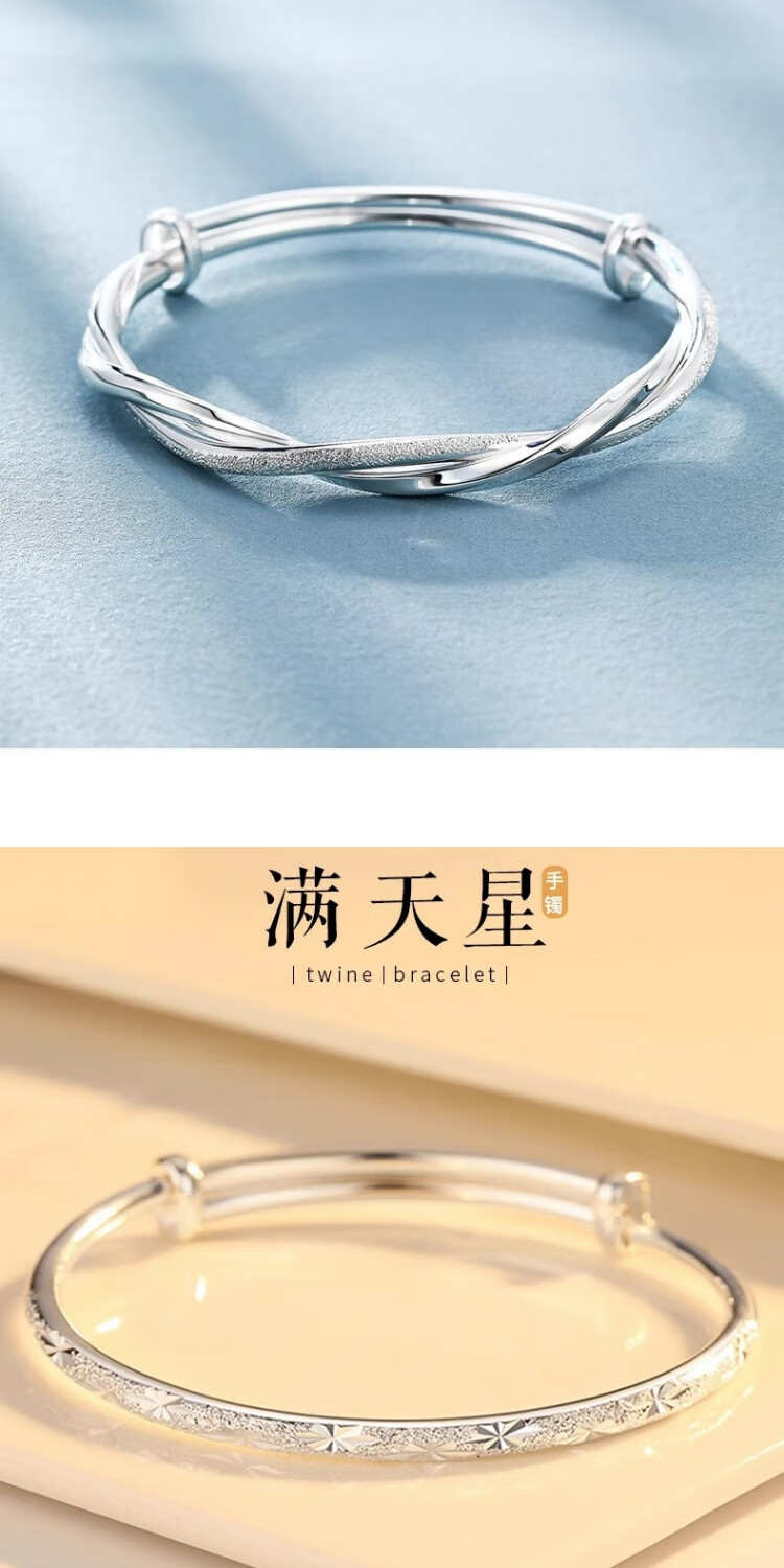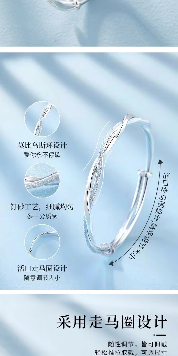 老凰祥纯银手镯女繁花似锦9999实心足银镯子年轻款送女友生日礼物 30克 磨砂竹节银手镯 【附带证书