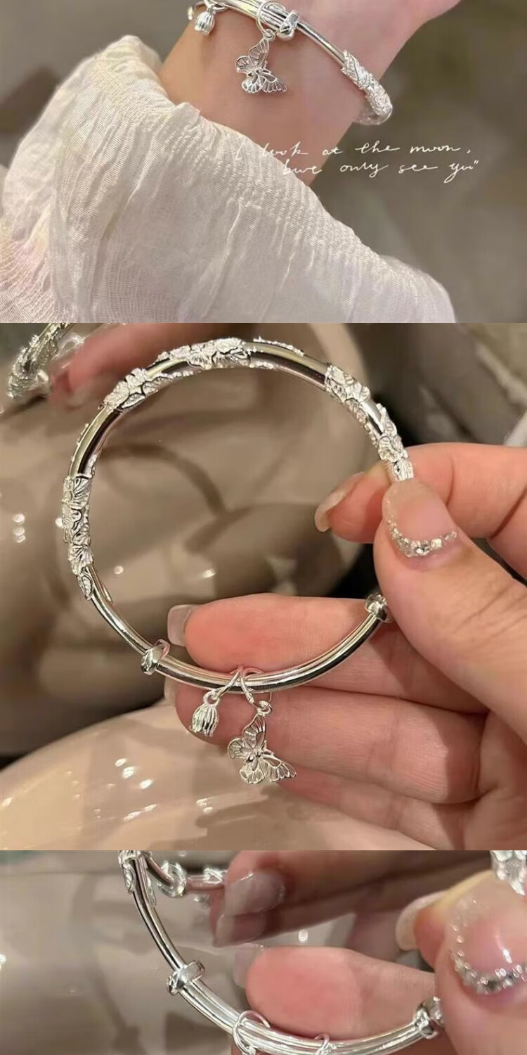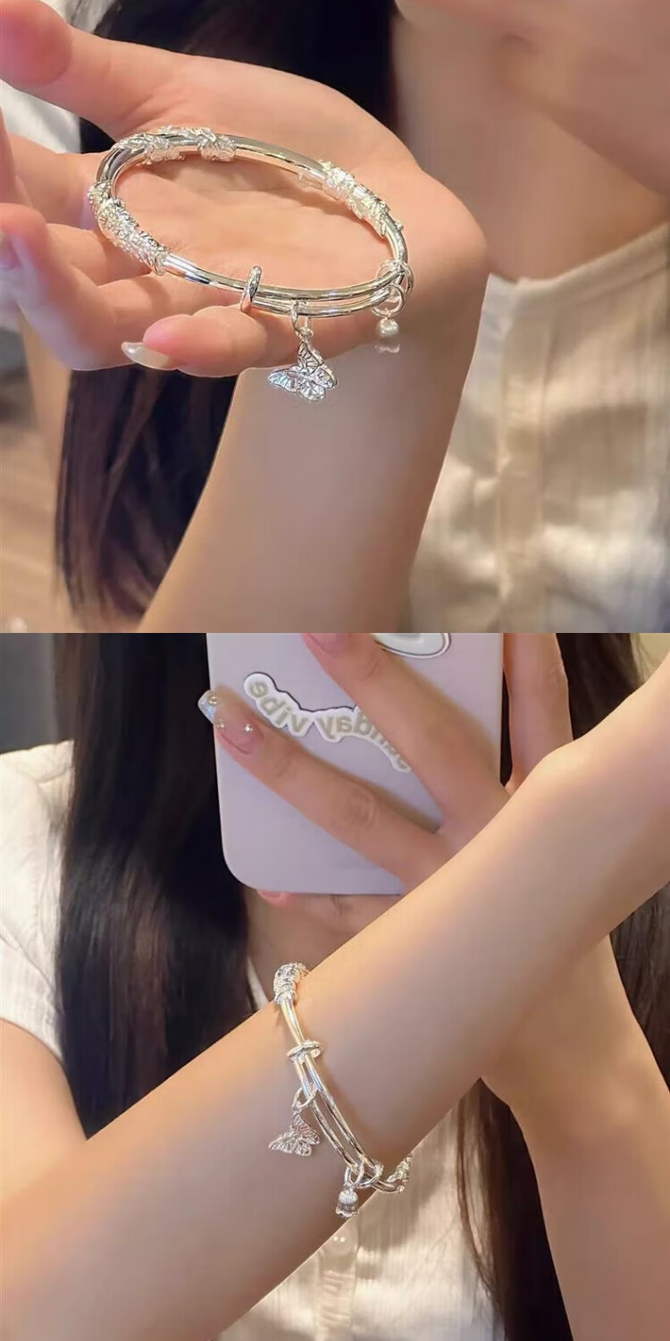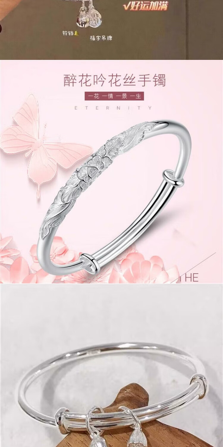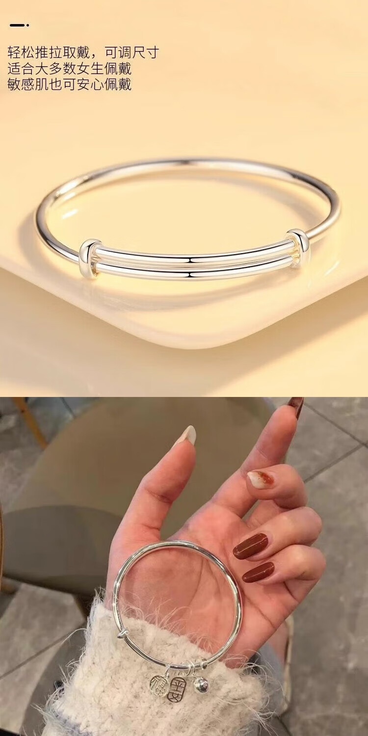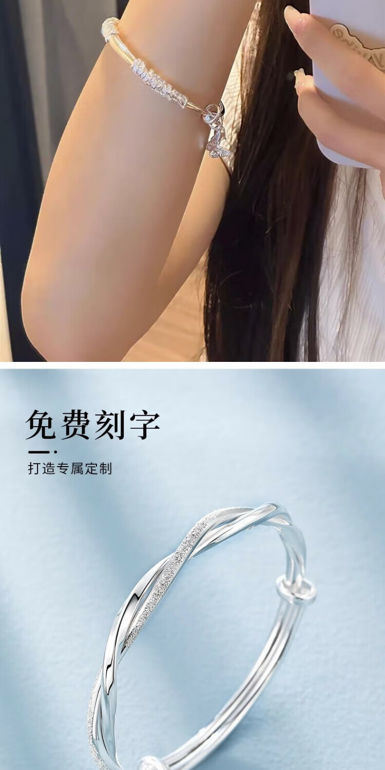 老凰祥纯银手镯女繁花似锦9999实心足银镯子年轻款送女友生日礼物 30克 磨砂竹节银手镯 【附带证书