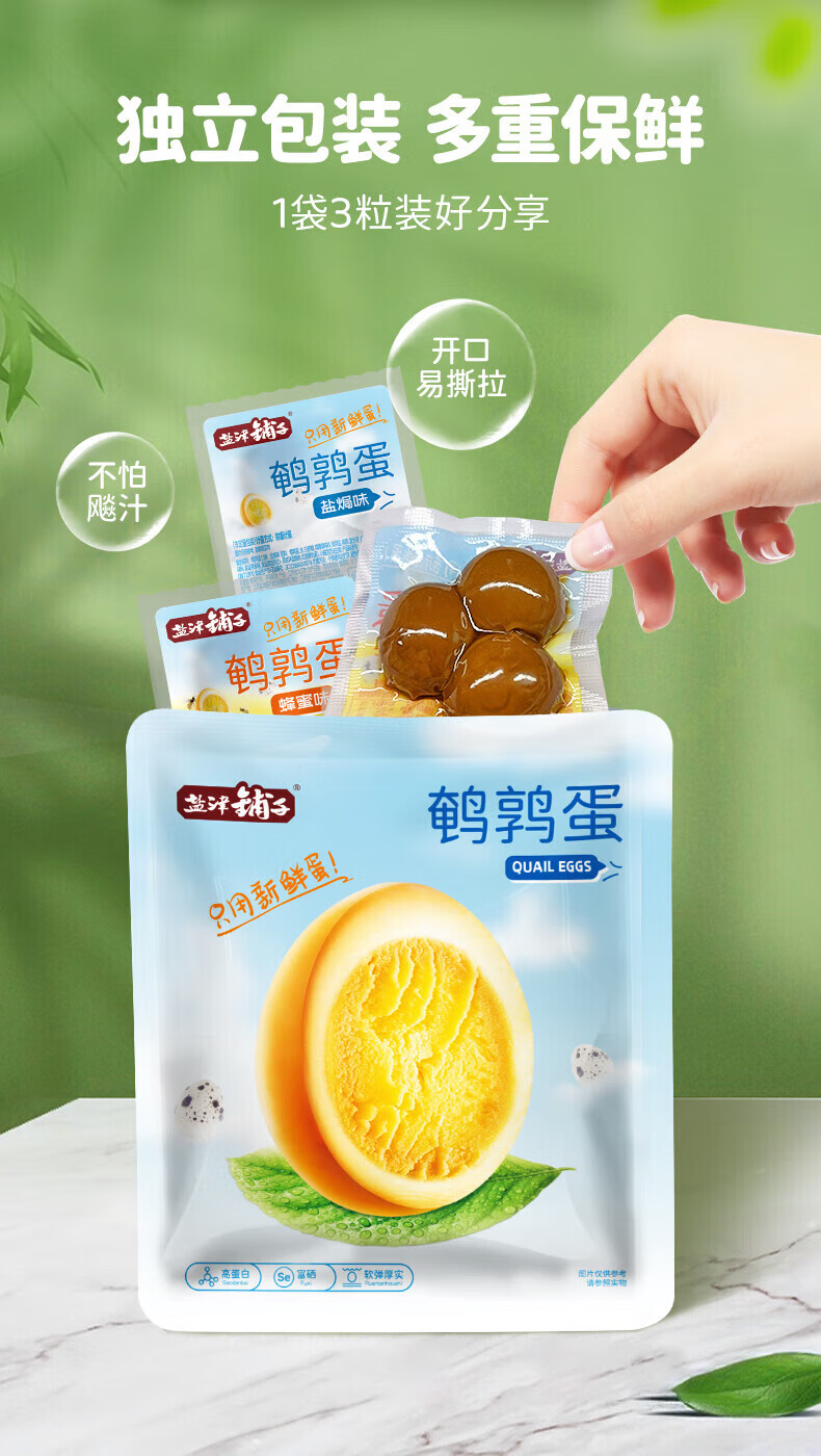 盐津铺子卤香鹌鹑蛋 盐焗蛋 卤蛋独立小包小吃 蛋皇谷物 零食食 30颗 10包鹌鹑蛋混合味(约200g)