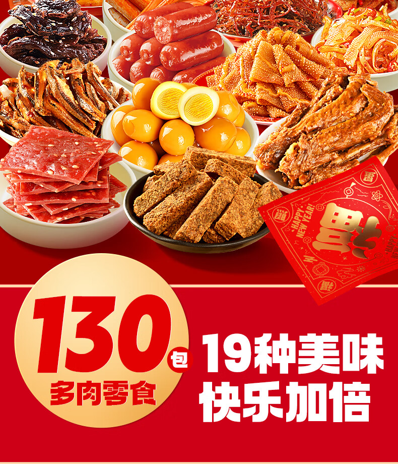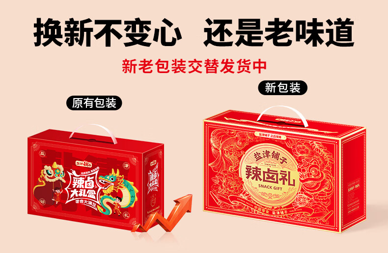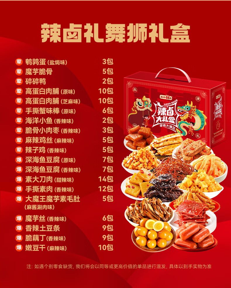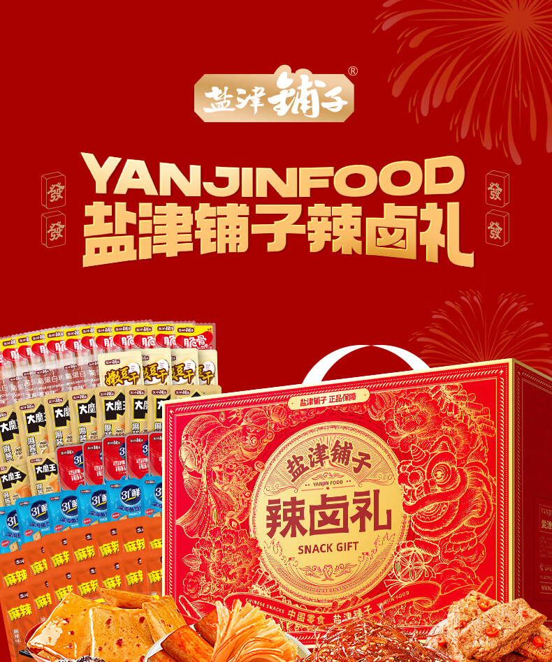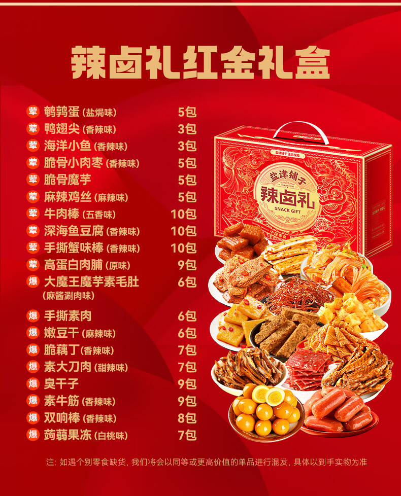 盐津铺子春节新年年货礼盒 送礼团购年货大礼包 坚果礼盒/卤味零食大礼包 辣卤零食礼盒(130包)约920g 1件