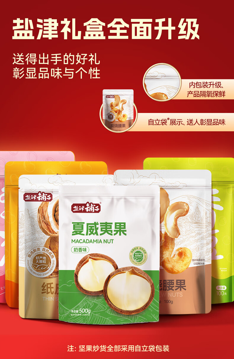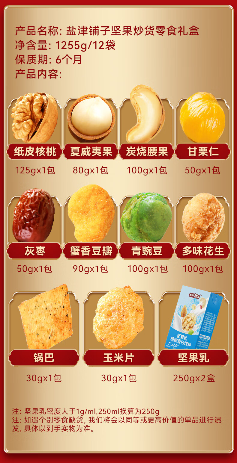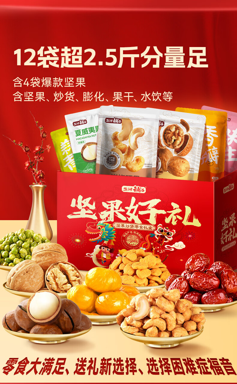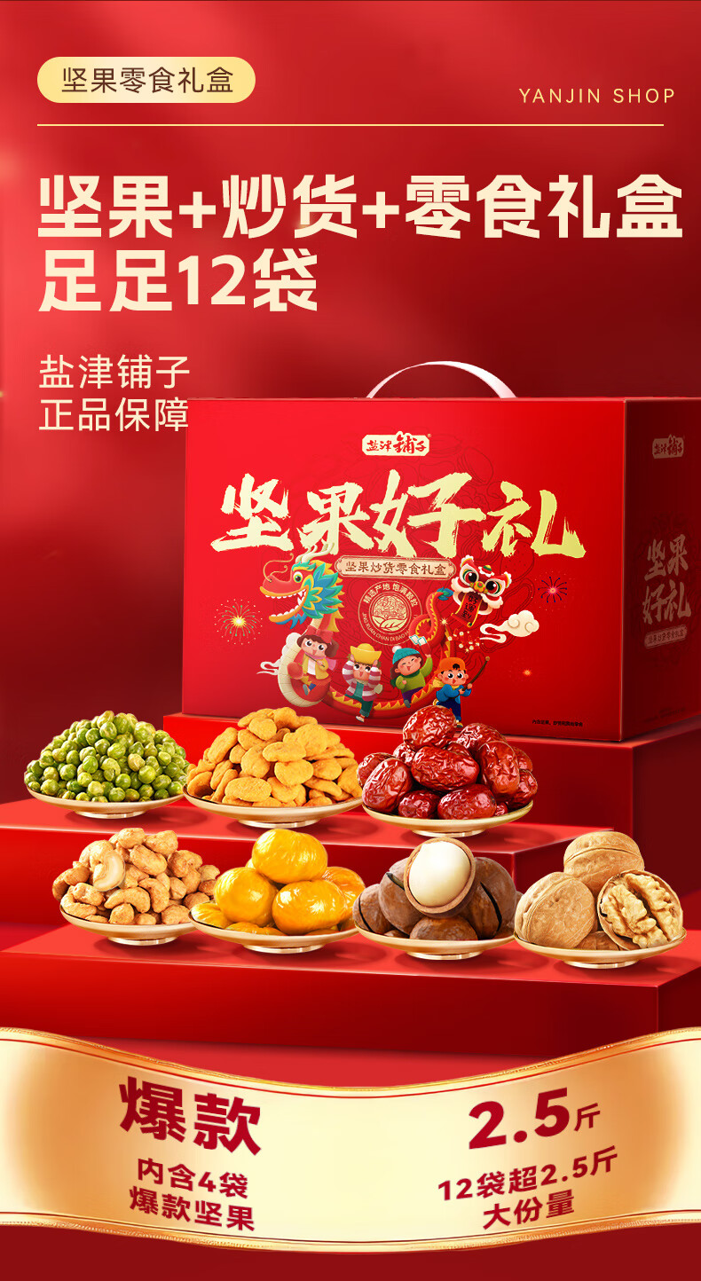 盐津铺子春节新年年货礼盒 送礼团购年货大礼包 坚果礼盒/卤味零食大礼包 辣卤零食礼盒(130包)约920g 1件