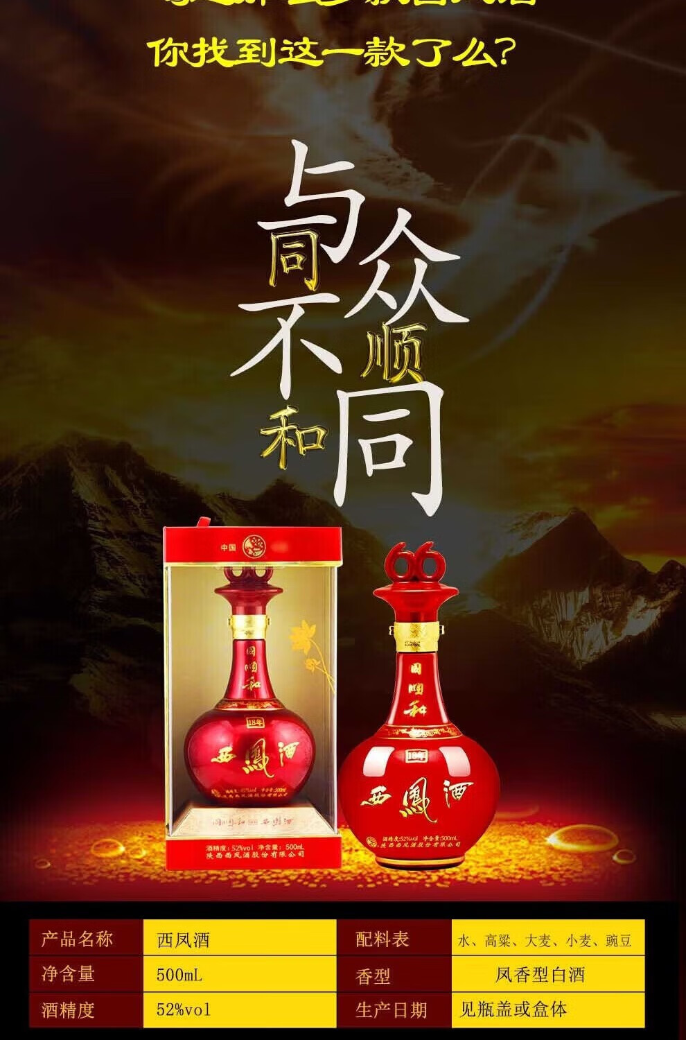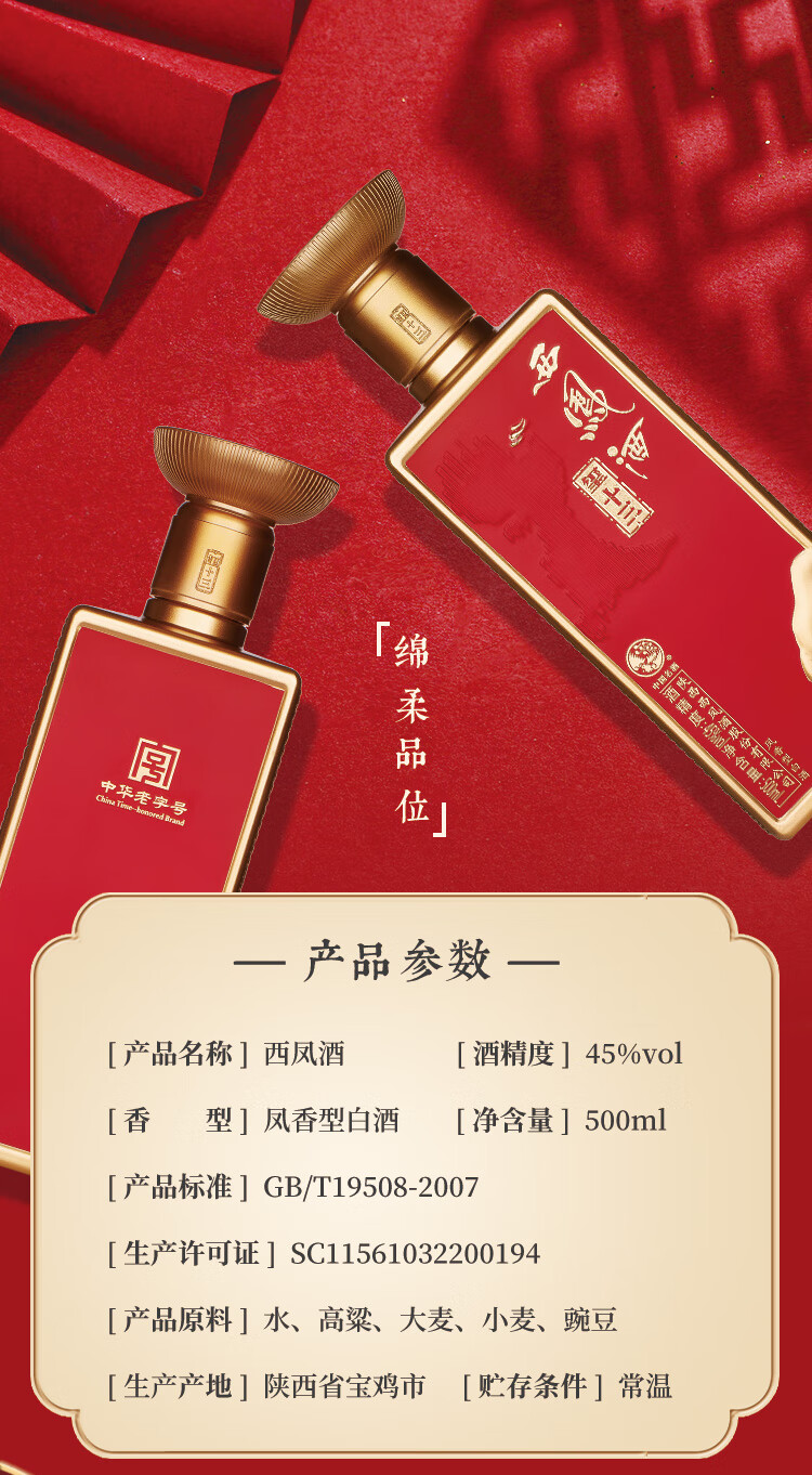 西凤酒 凤香型白酒 商务宴请送礼佳品 52度 500mL 1瓶 红绵雅