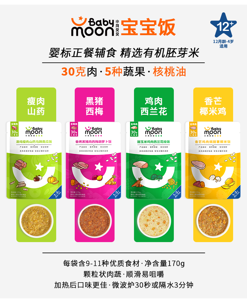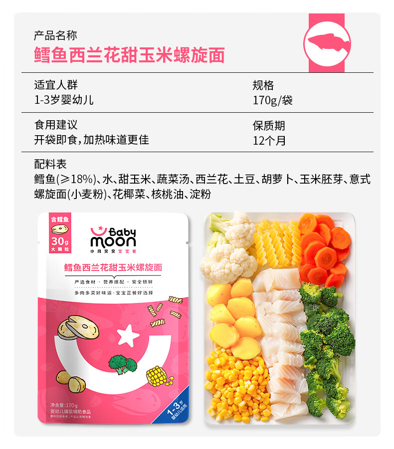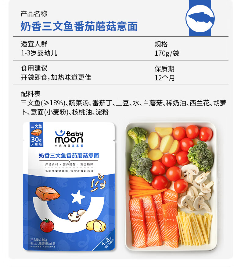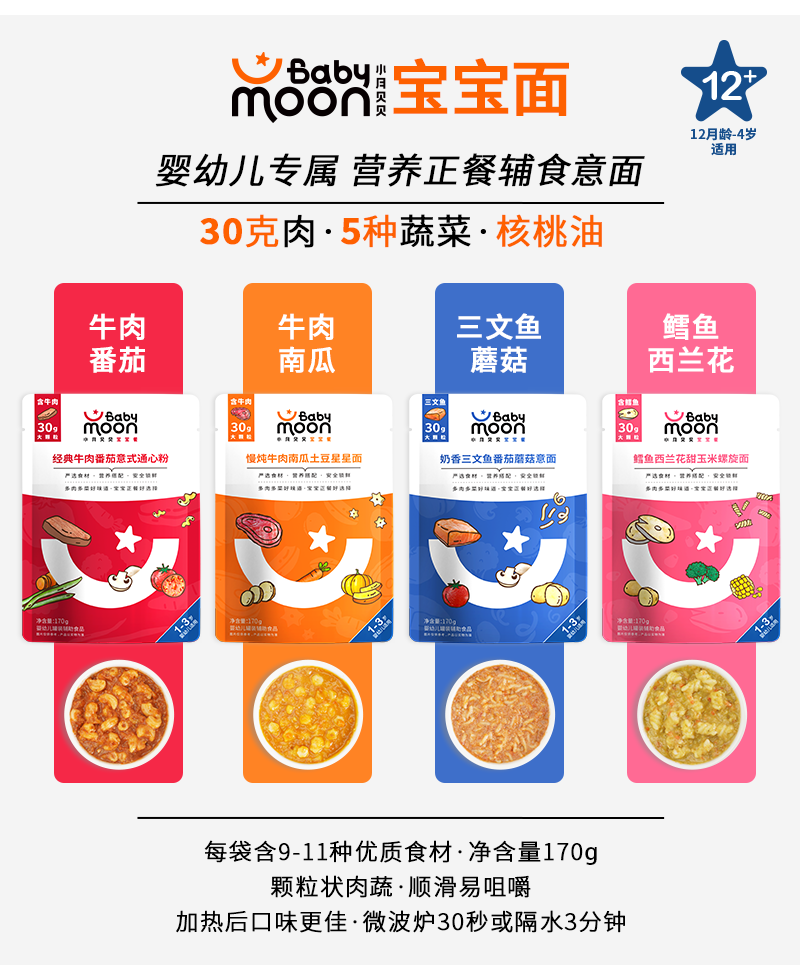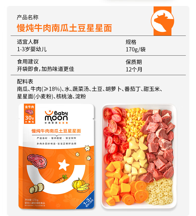 小月贝贝婴幼儿辅食宝宝牛肉鳕鱼意面条胚芽米饭营养外出即食餐泥 【3袋】牛肉意面+三文鱼意面+香芒鸡肉饭