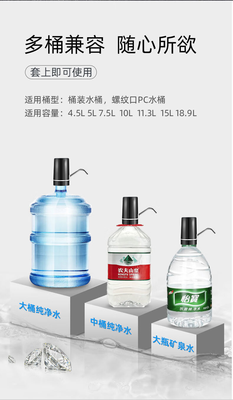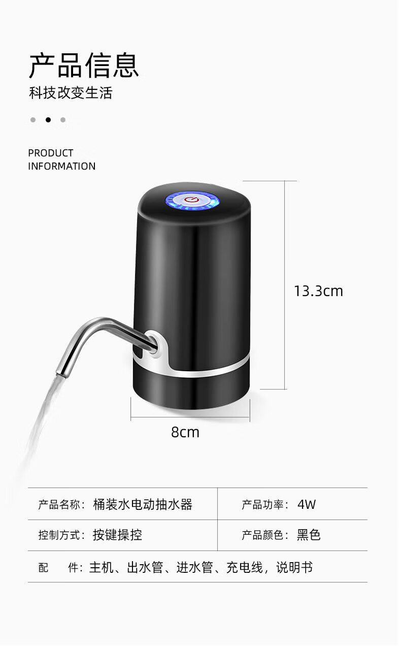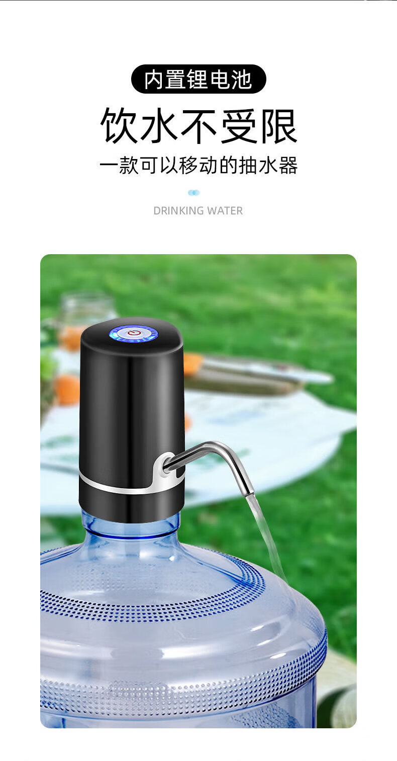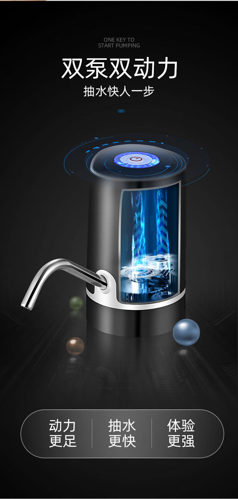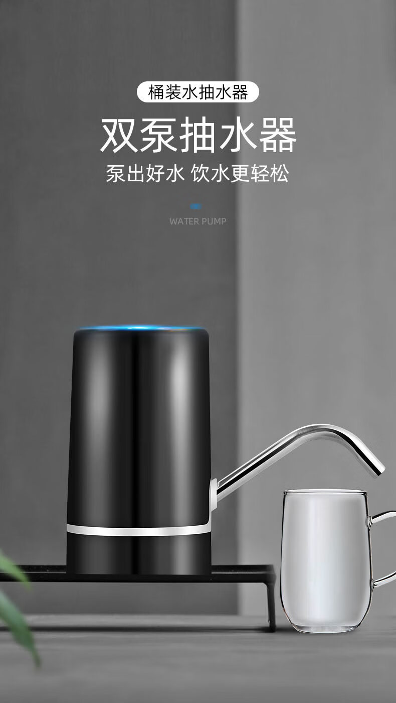 桶装水抽水器电动饮水机家用充电双泵纯净水桶压水器自动上水器 051S双泵黑色(1个装)