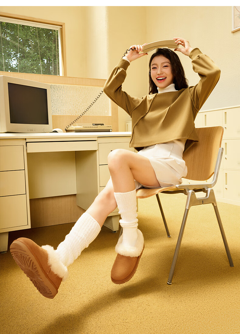 UGG秋季女士休闲舒适纯色保暖平底圆头蝴蝶结款短靴雪地靴1153514 CHE | 栗色 38