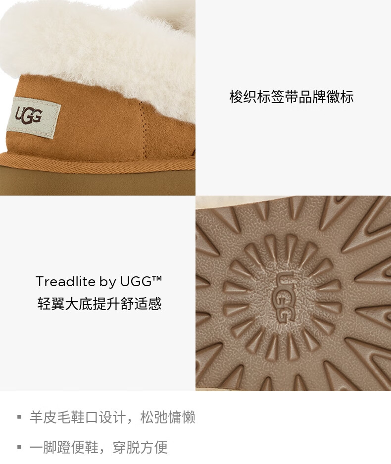UGG秋季女士时尚舒适茸茸毛圈口平底休闲乐福鞋懒人毛毛鞋1119002 CHE | 栗色 38