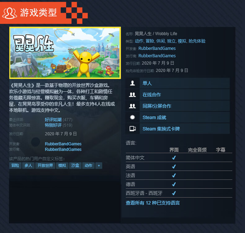 Steam 晃晃人生 Wobbly Life 国区CDKey激活码 PC正版中文游戏 标准版