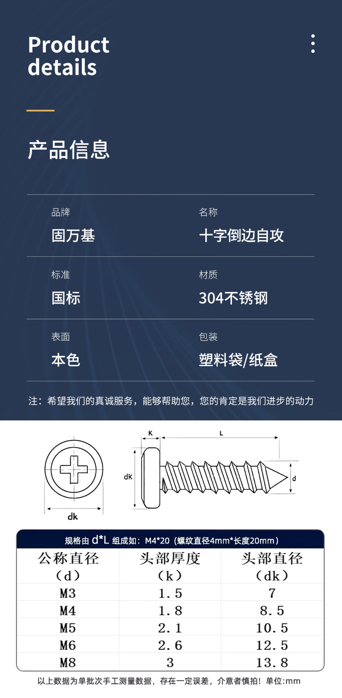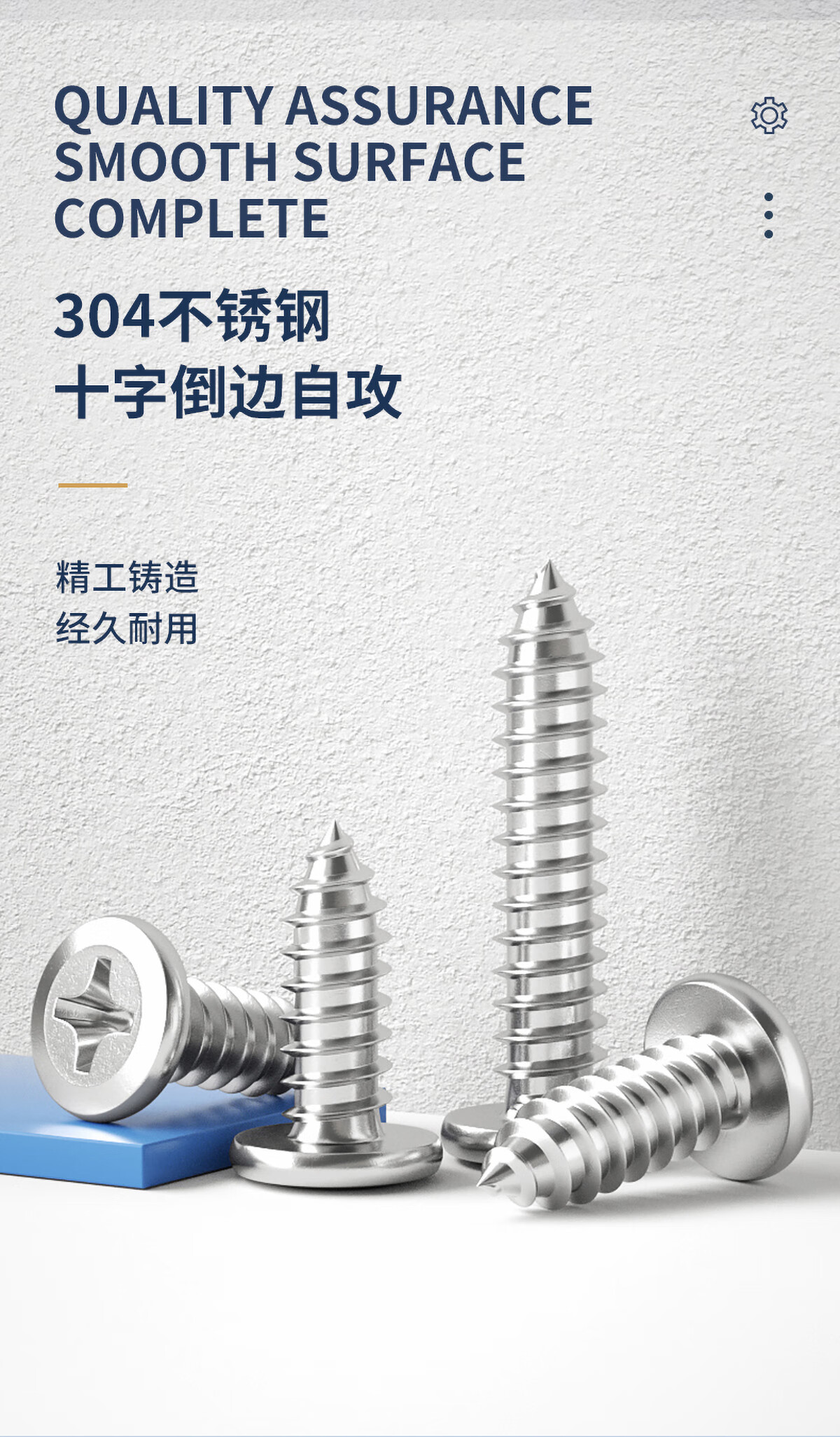 固万基(GUWANJI)304不锈钢十字平头倒边自攻螺丝钉圆头家具斜边木螺钉大全M3-M8 M3x6(200只)