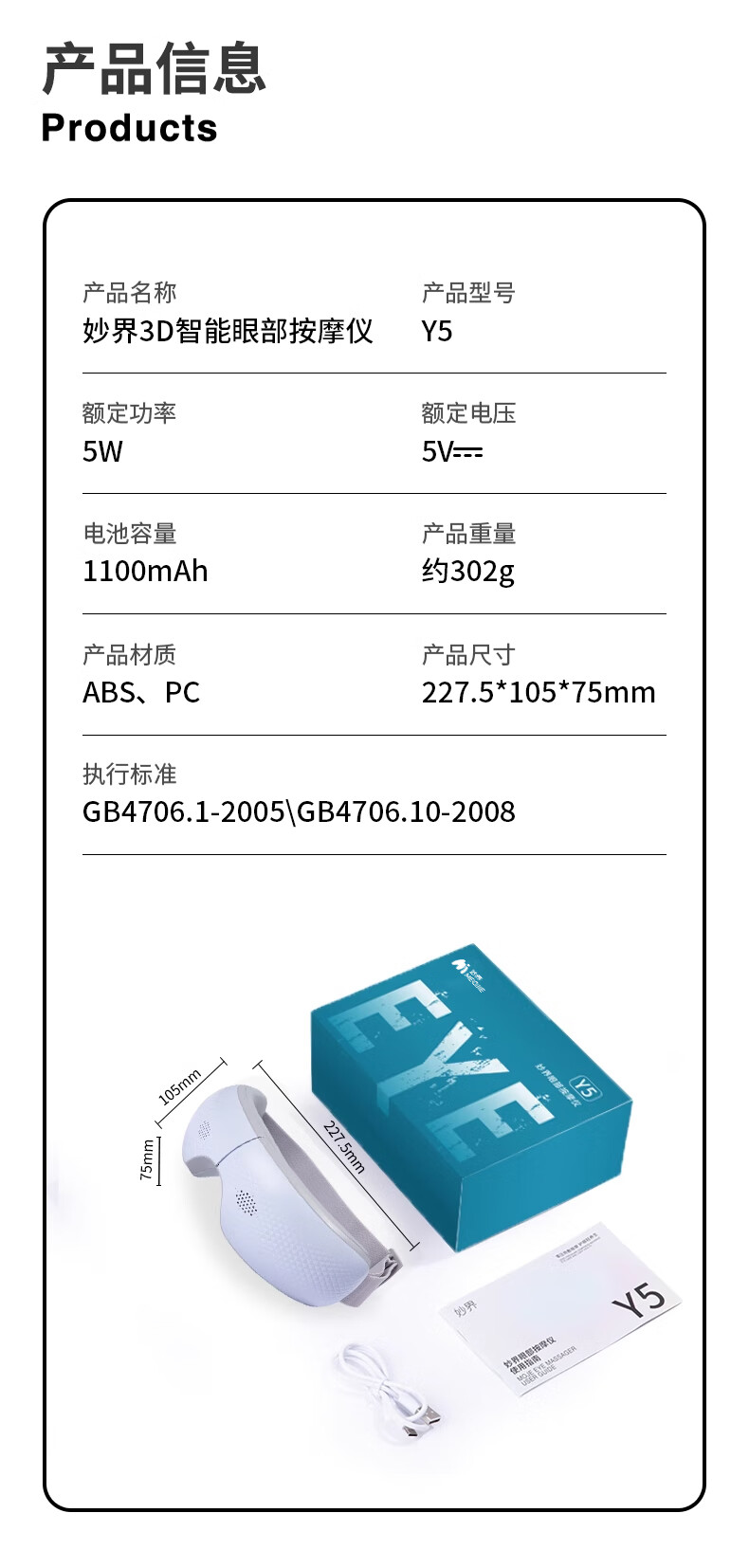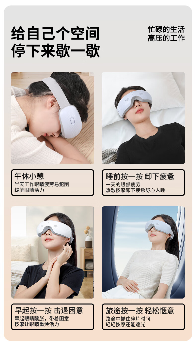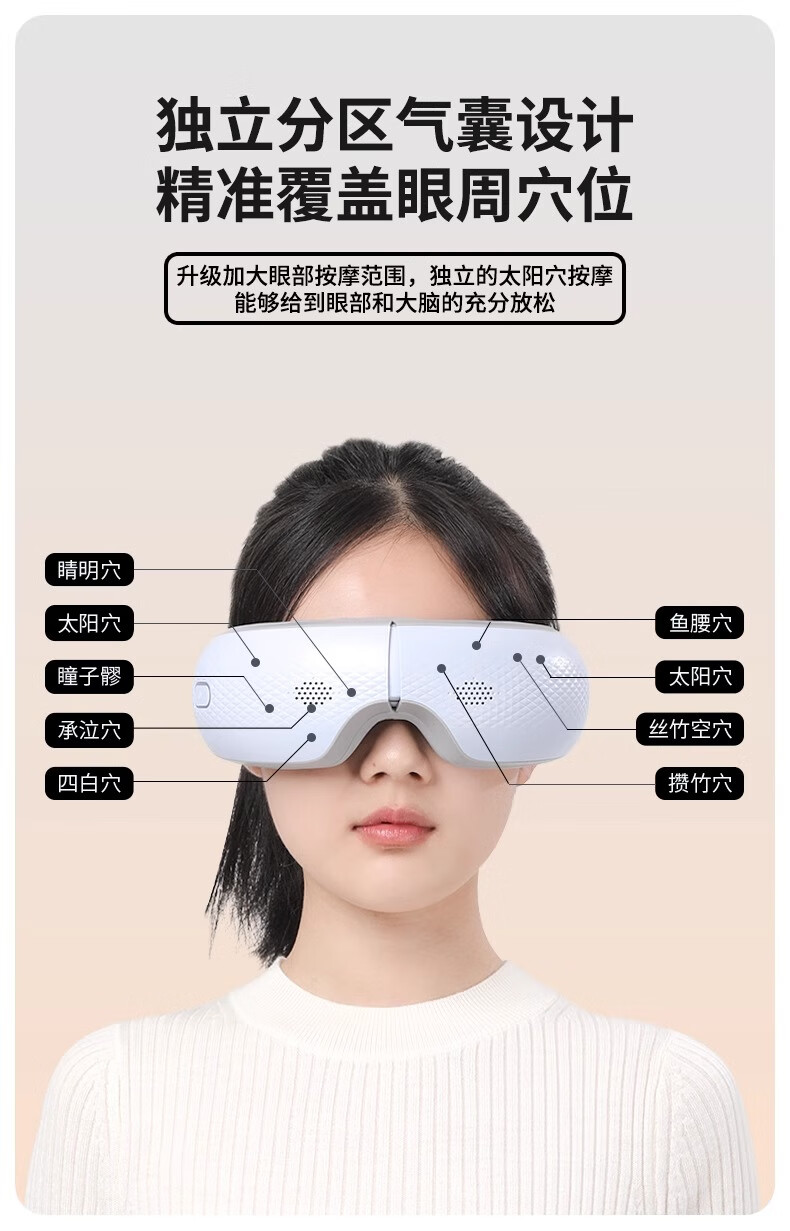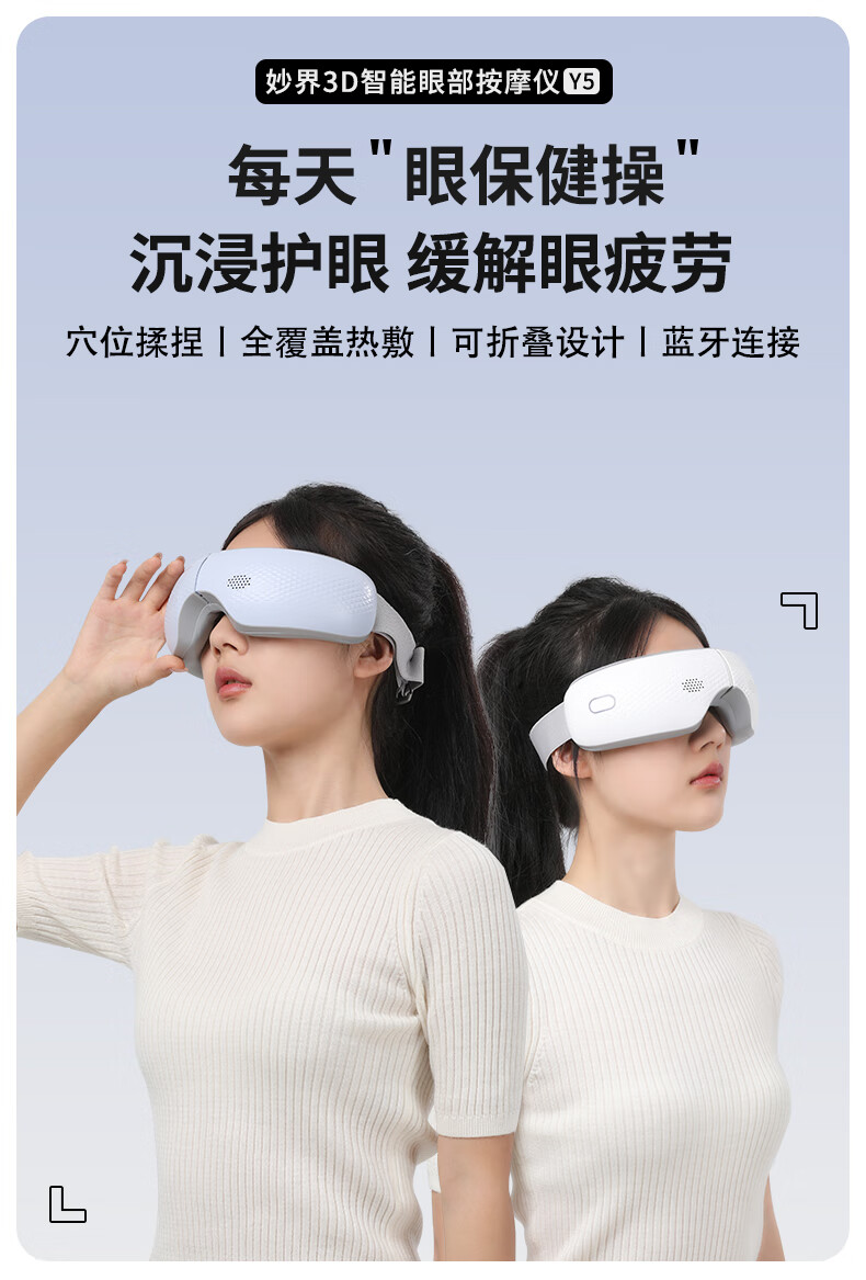妙界Y5眼部按摩仪护眼仪器气囊按摩眼睛干涩缓解疲劳温感热敷润睡眠眼罩午睡神器实用生日礼物 白色