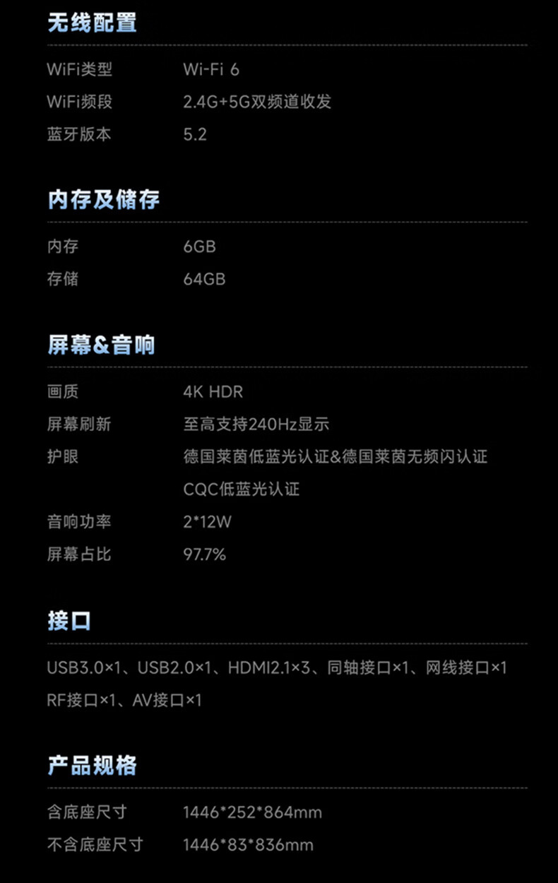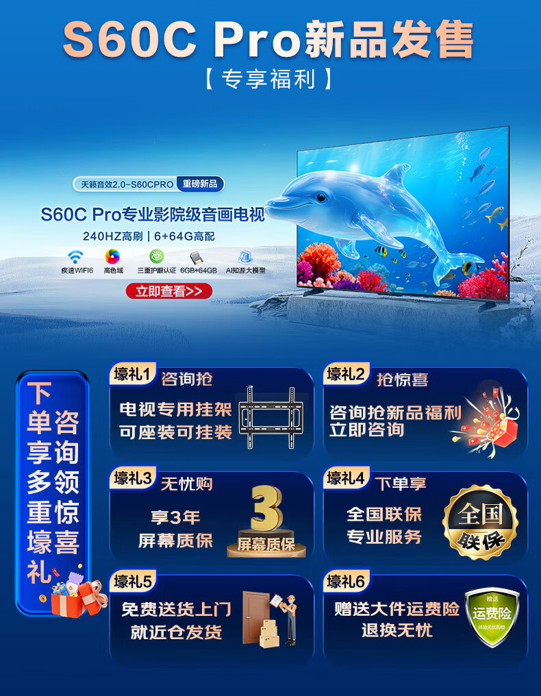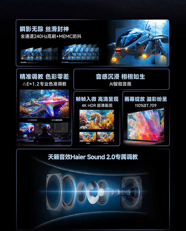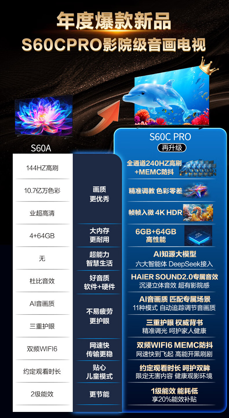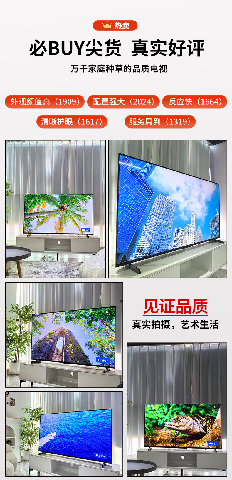 海尔(Haier)电视新品S60C 全通道240HZ高刷6+64G大内存 双频WiFi6 AI智慧屏彩电液晶4K护眼超薄游戏电视 65英寸 新品240HZ高刷6+64G三重护眼 咨询领惊喜