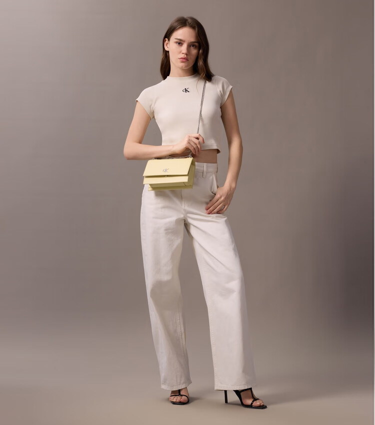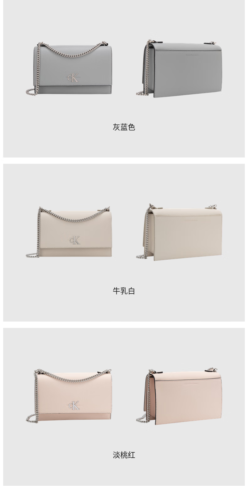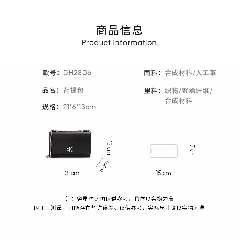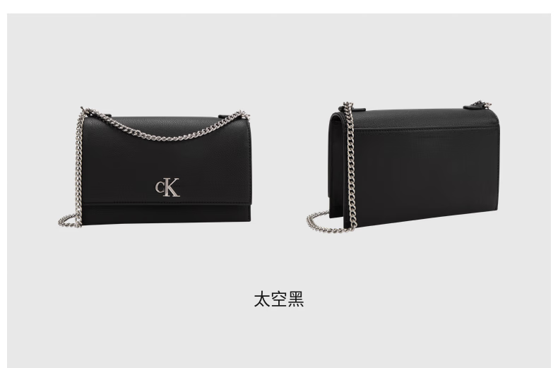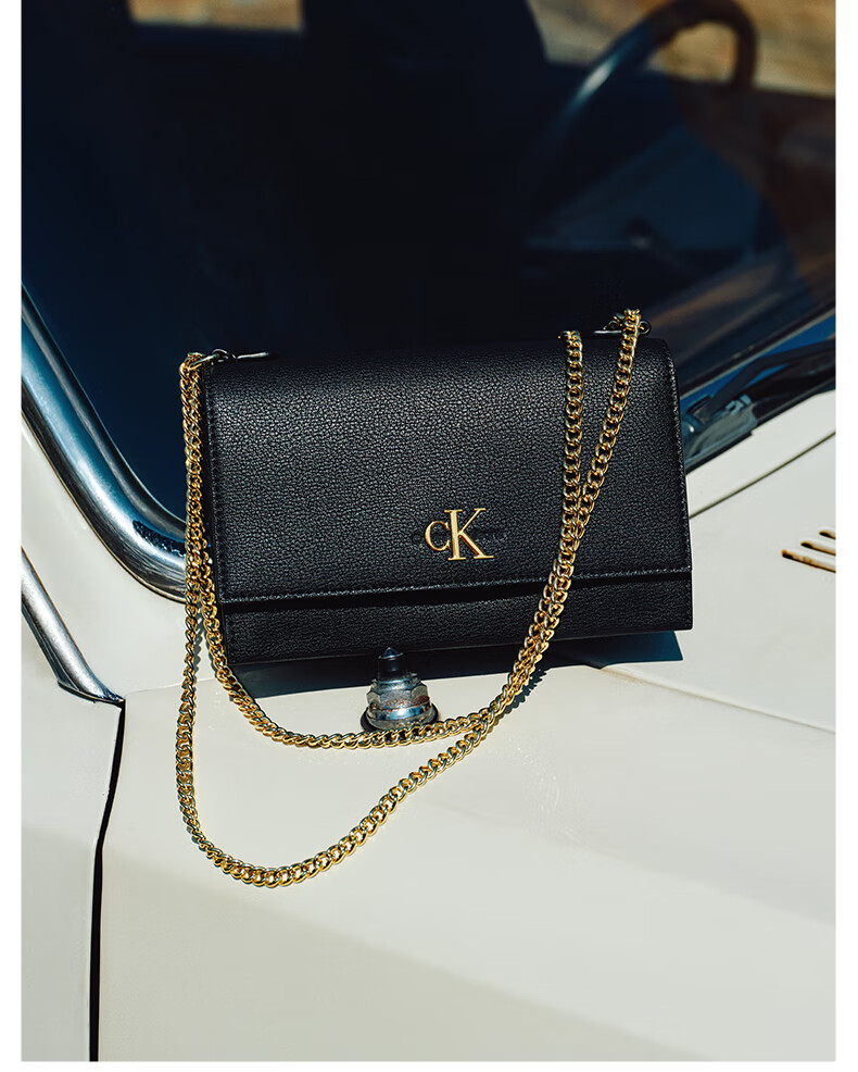 Calvin Klein小众单肩包礼物荔枝纹包包金属搭扣链条翻盖CK女包斜挎包DH2806 UB1-太空黑 OS
