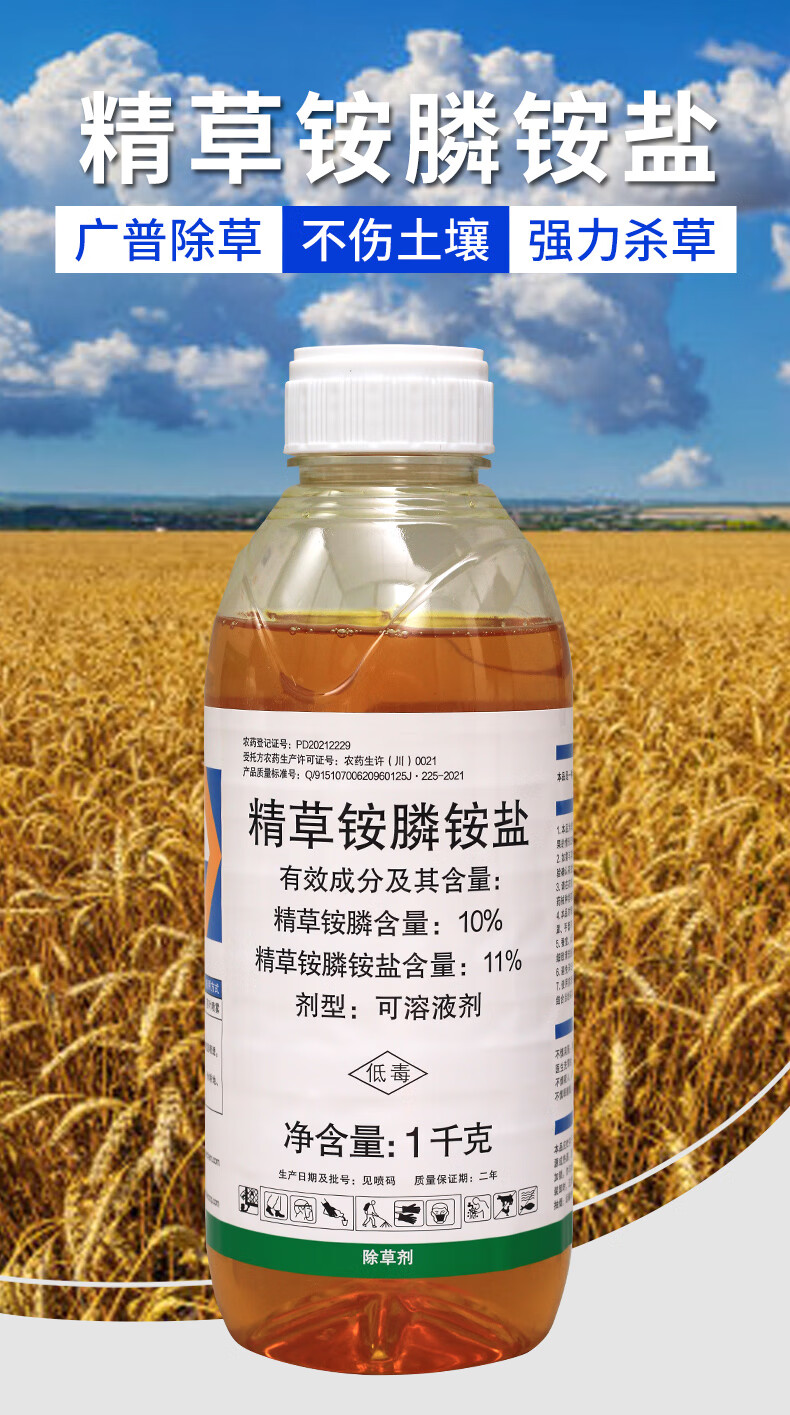 豫掌门精草铵膦铵盐除草剂连根烂死果园荒地芦苇小飞蓬牛筋草正品除草剂 1000克*1瓶【送助剂1袋】