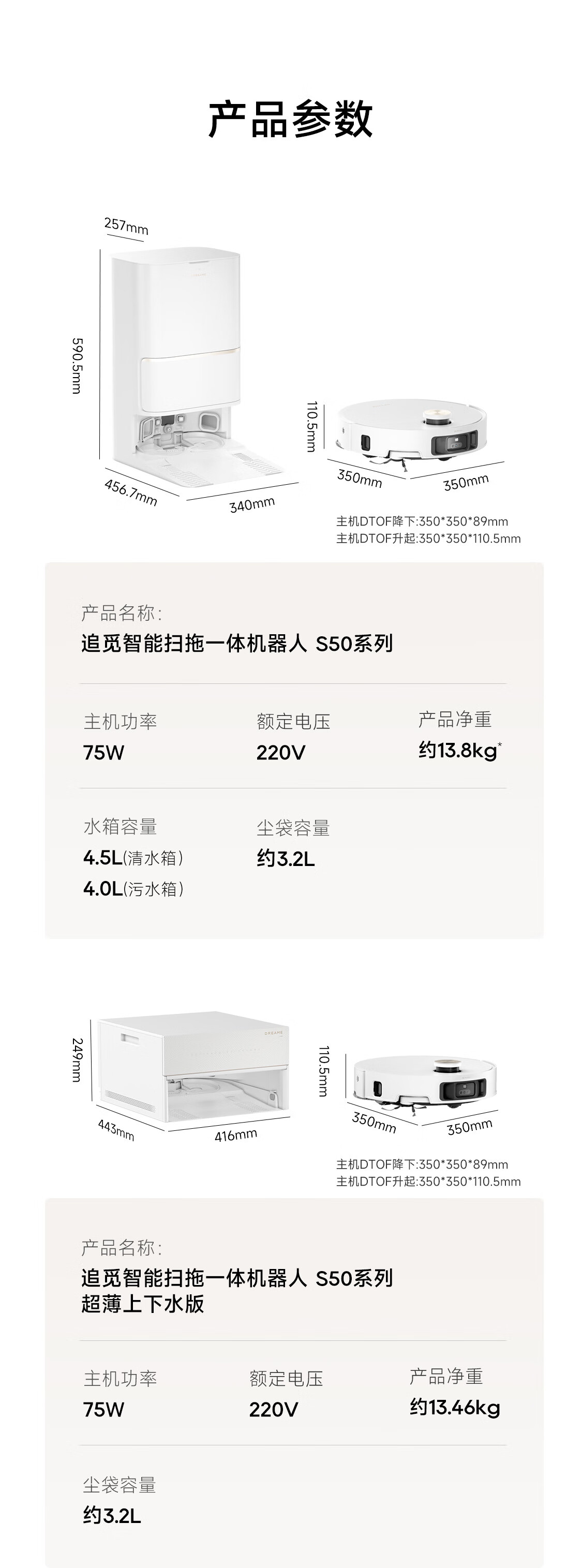 追觅官翻机S50Pro扫地机器人扫拖洗拖一体双机械臂基站自清洁智能家用洗地扫地机 S50Pro超薄上下水轻微试用B级