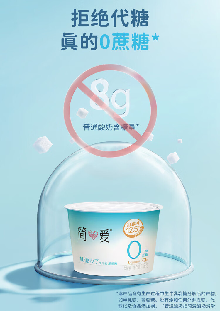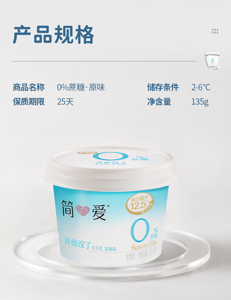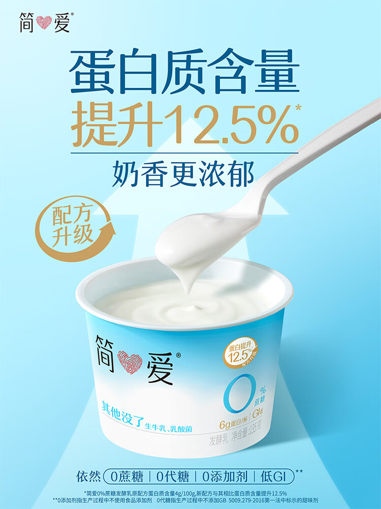 简爱 酸奶 0蔗糖 0代糖 天然乳蛋白健康儿童健身轻食低温酸奶 0%蔗糖原味135g*12杯