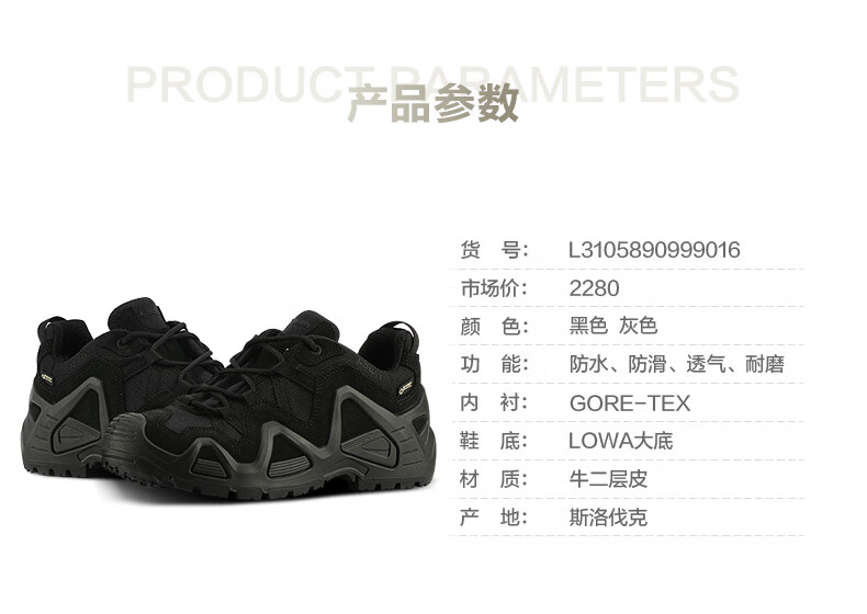 LOWA德国mk1低帮作战术靴专业户外防水防滑登山徒步鞋靴男款春夏 黑色 44