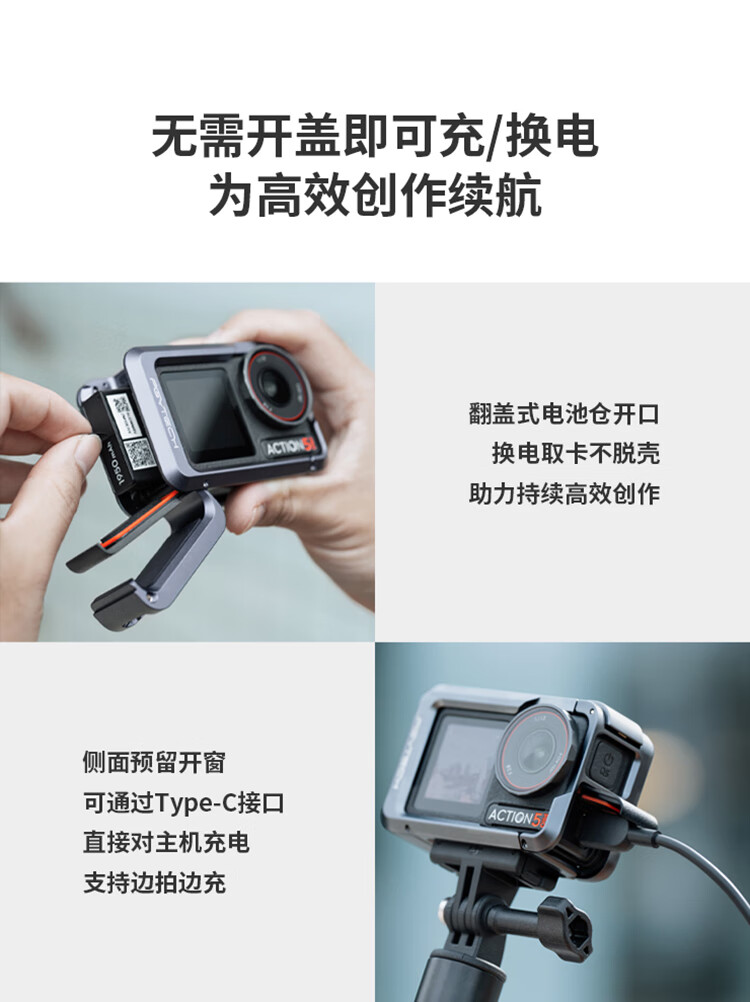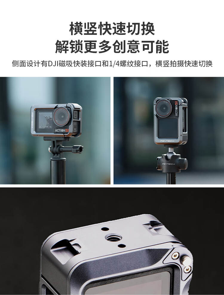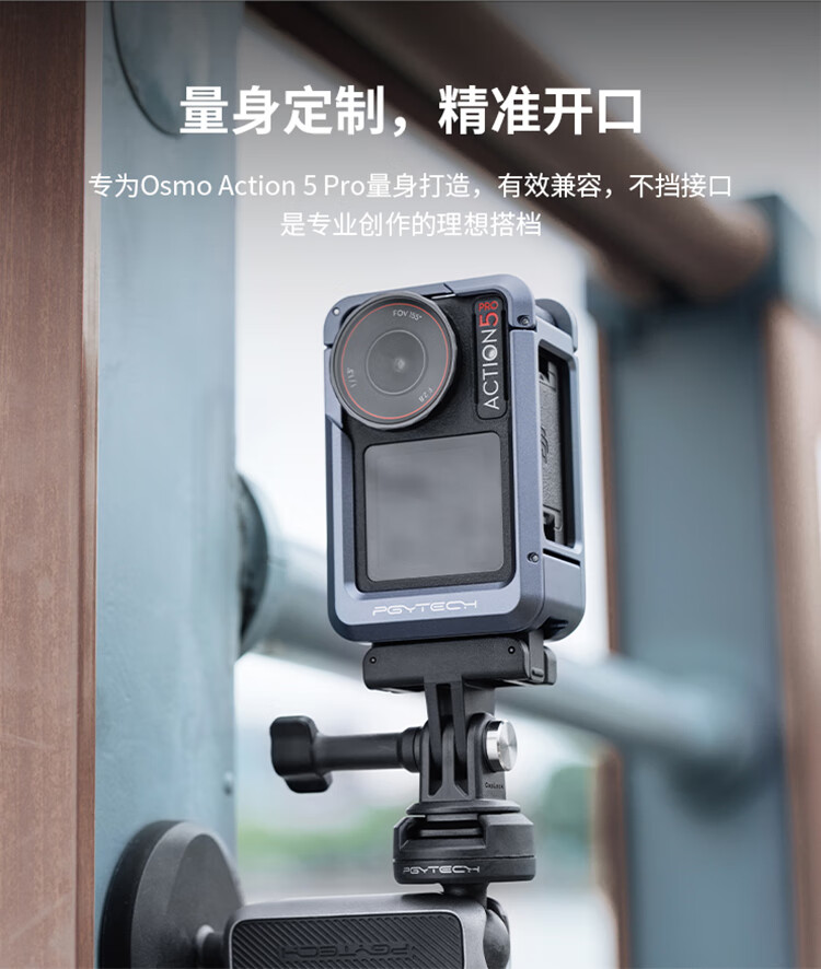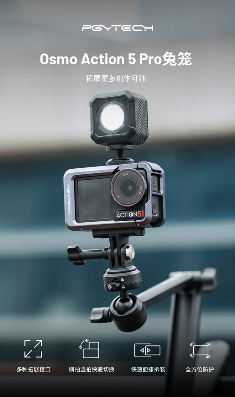 PGYTECH兔笼Action5Pro金属保护框运动相机灵眸配件适用大疆action5兔笼蒲公英麦克风补光灯摄影配件