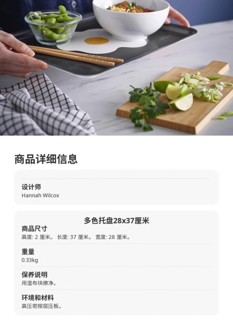 宜家(IKEA)KEJSARFISK科萨菲斯托盘茶点盘早餐上菜盘家用 多色托盘28x37cm