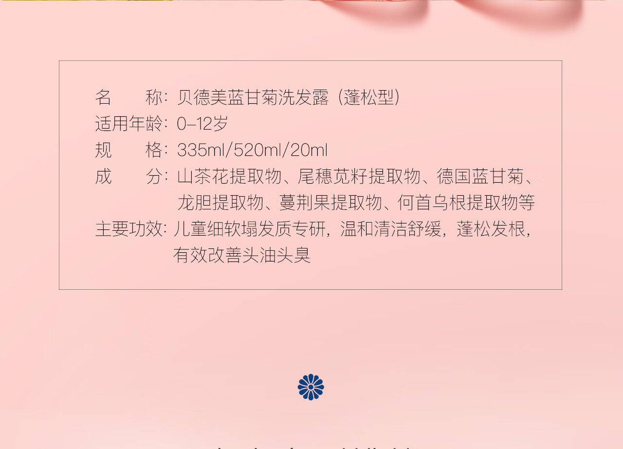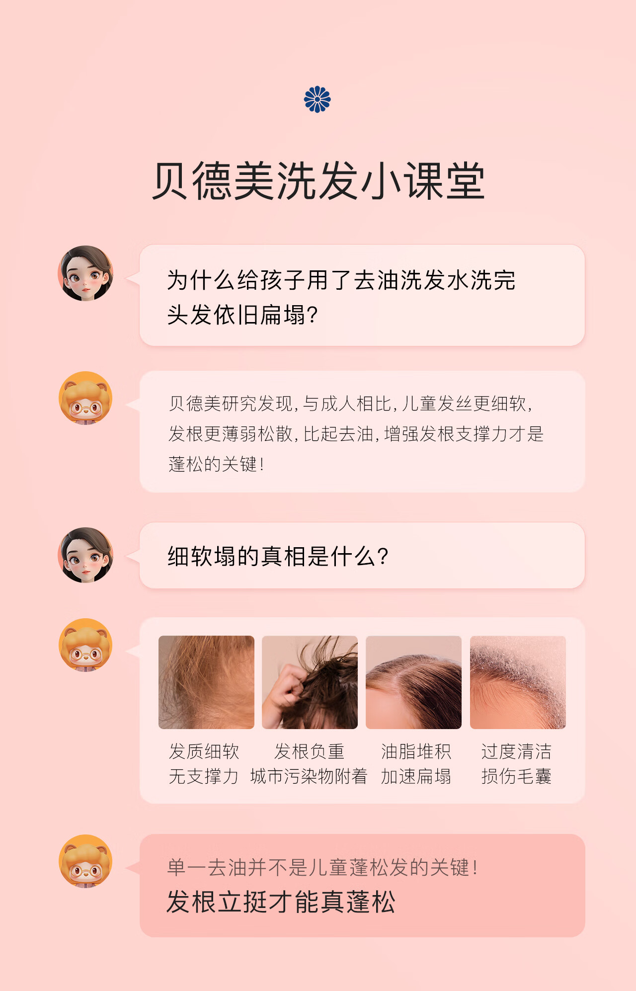 贝德美儿童洗发水青少年控油蓬松宝宝洗发露中大童男孩女孩洗头膏335ml