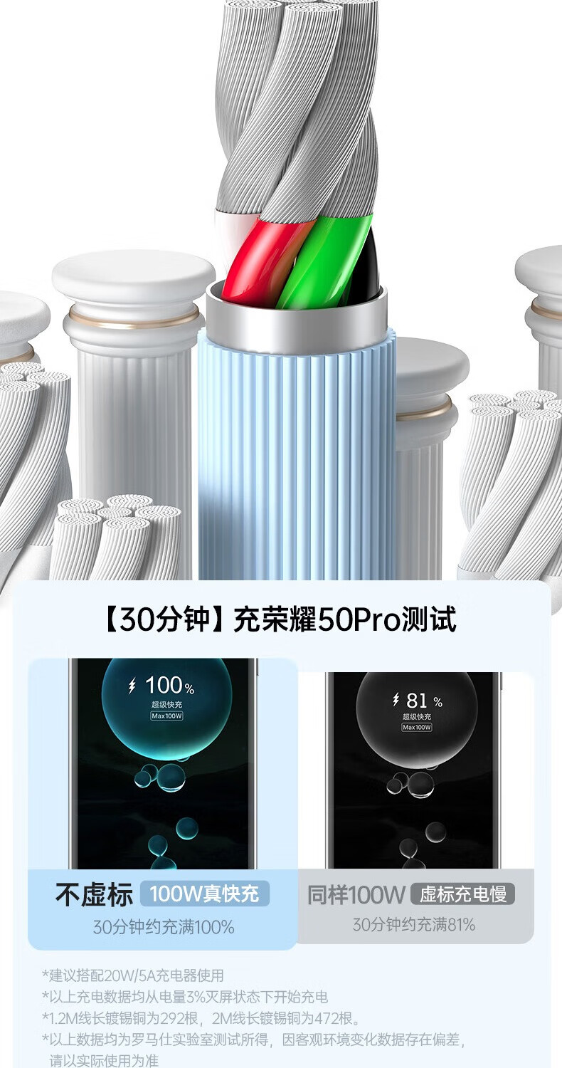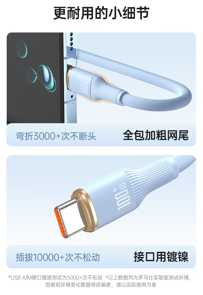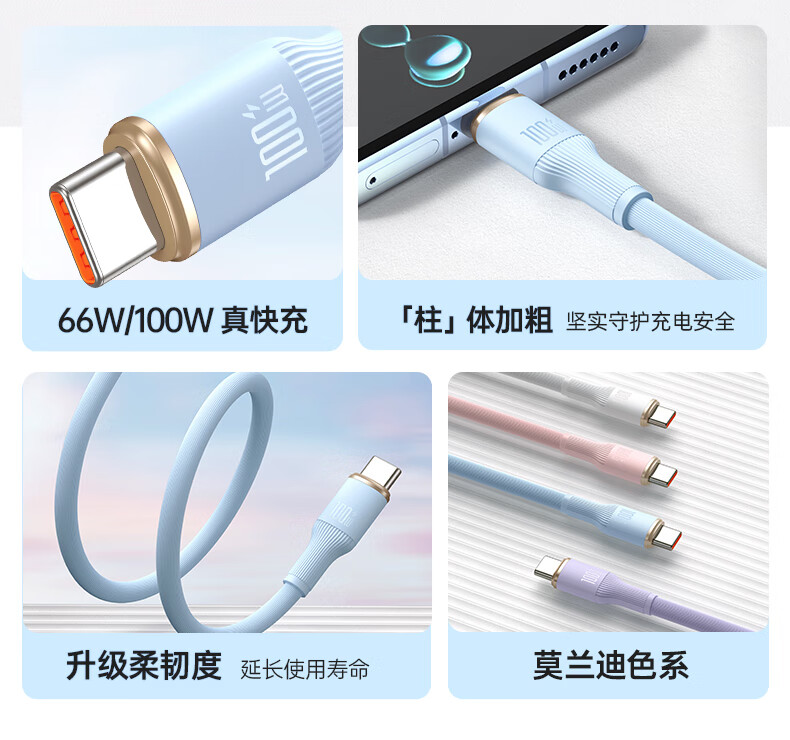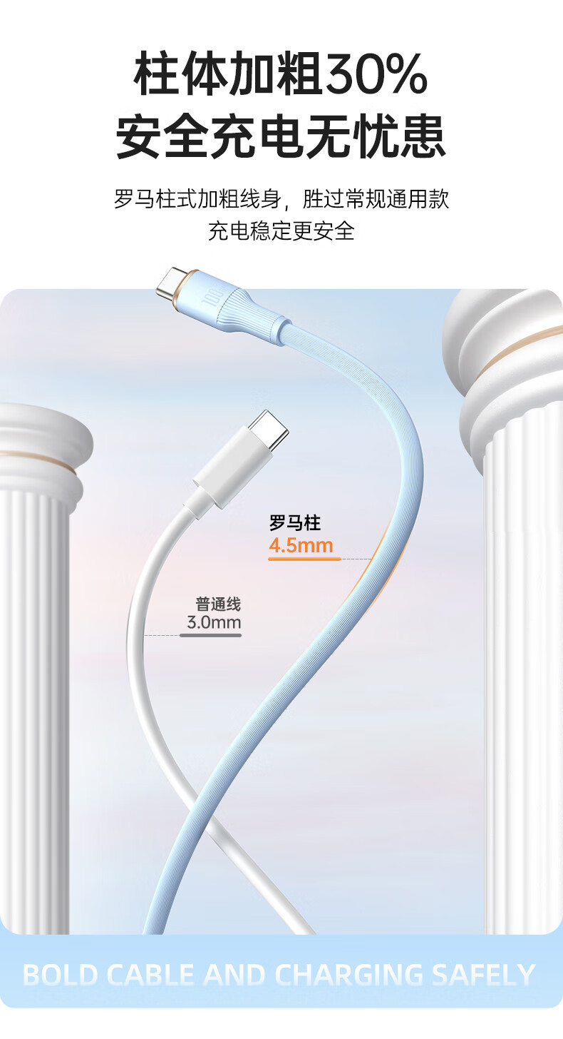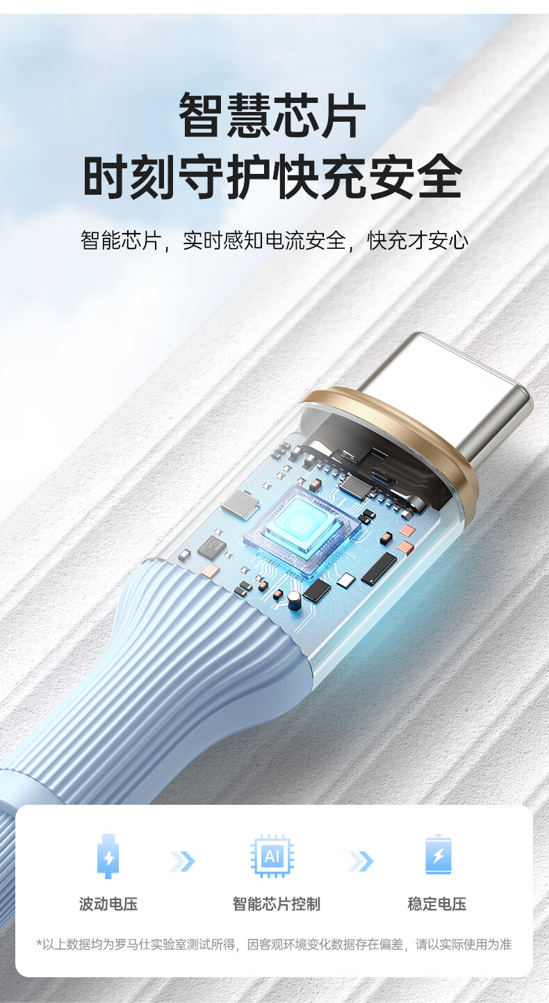罗马仕Type-C数据线6A超级快充100W/66W充电线适用华为Mate60小米荣耀平板安卓手机车载线 星光白【100W快充】1.2m