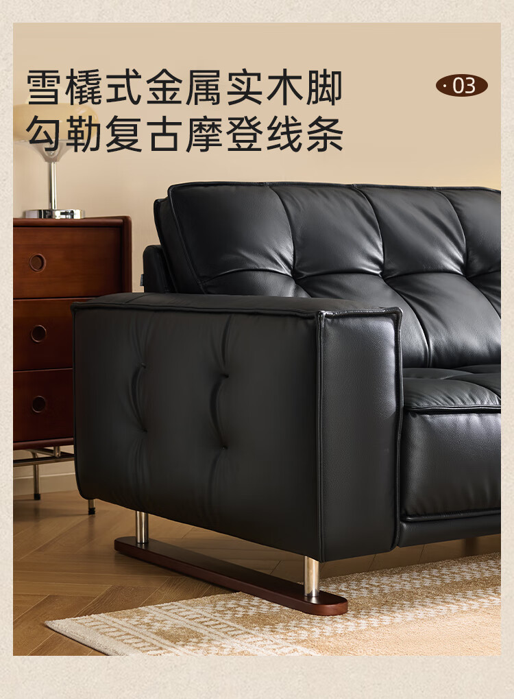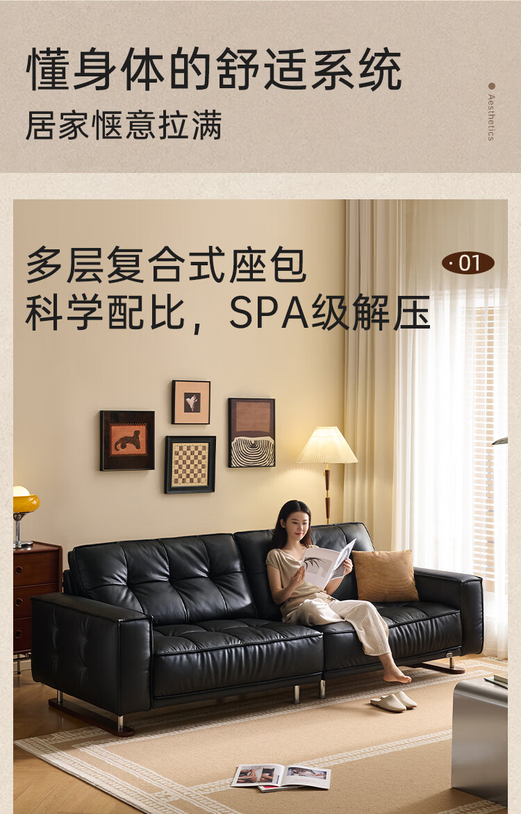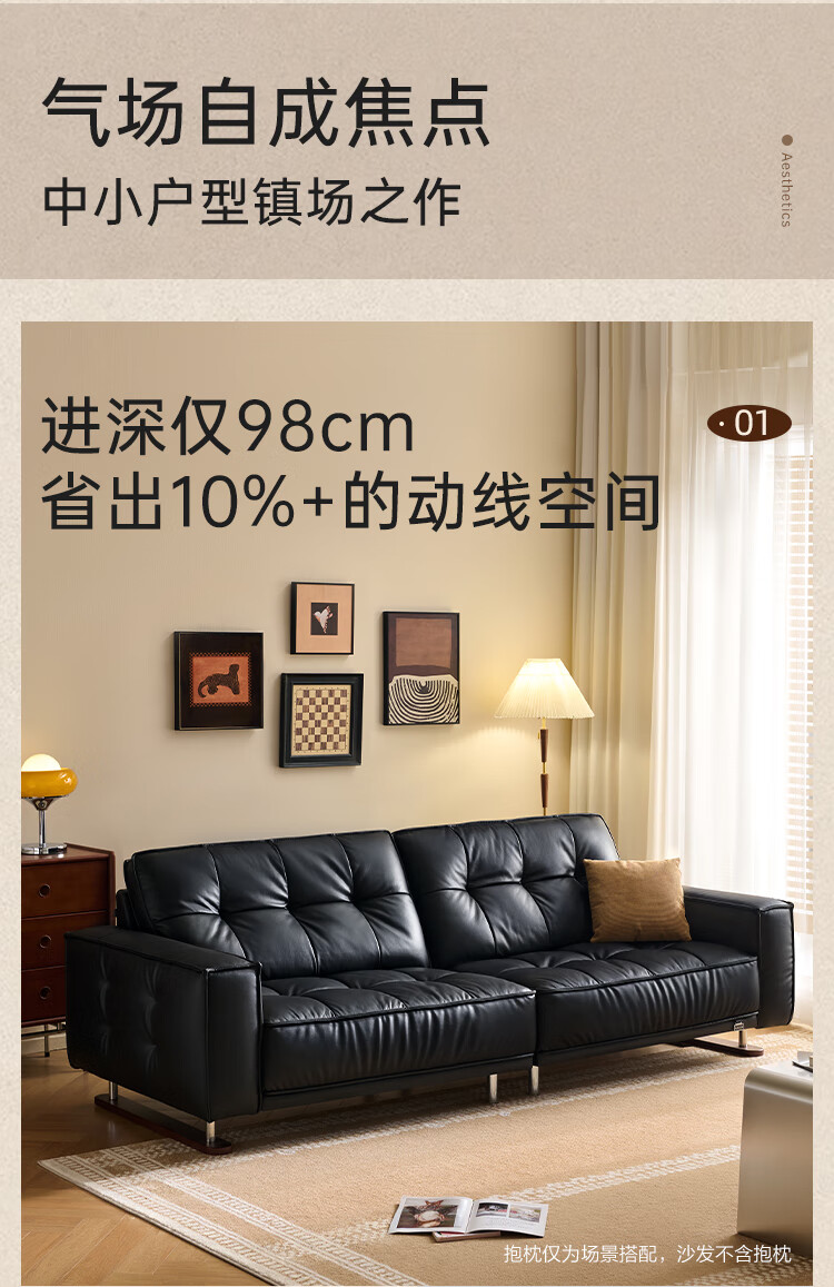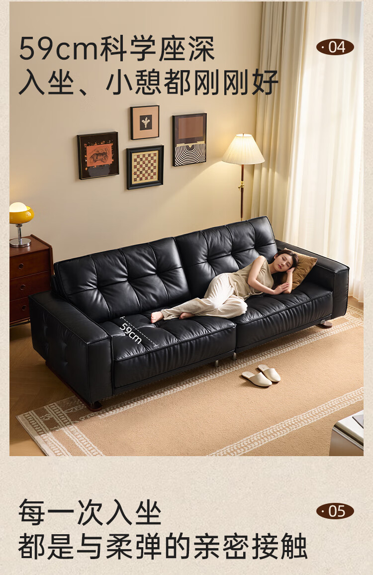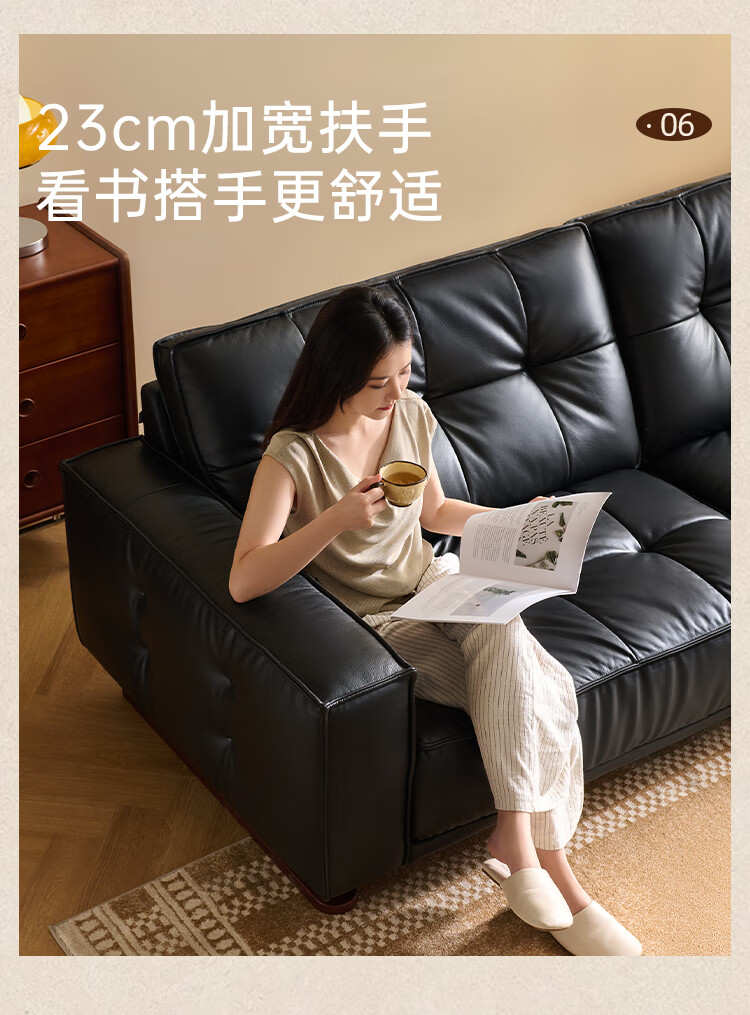 全友家居中古风小户型头层牛皮沙发客厅家用2025新款一字直排沙发家具 【牛皮】2.58m沙发 羽绒座包+5层好料+59cm座深