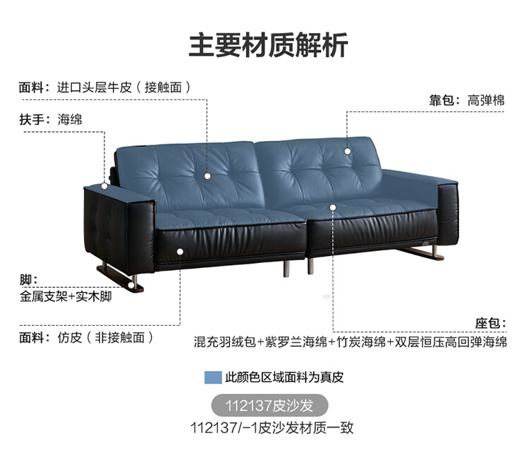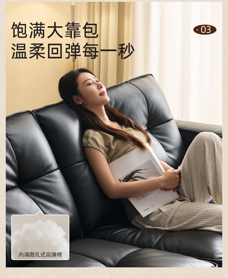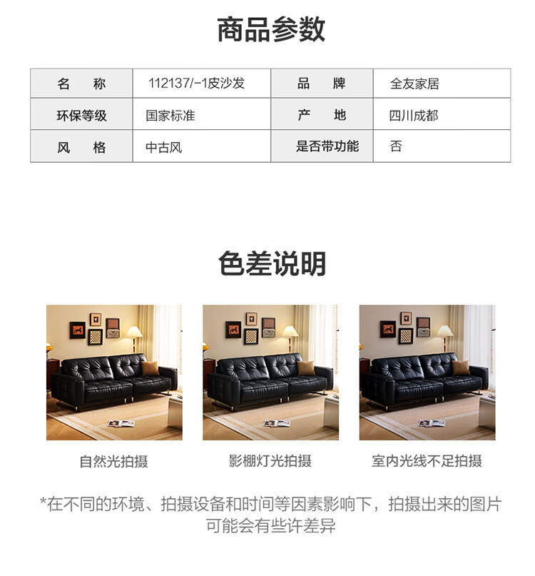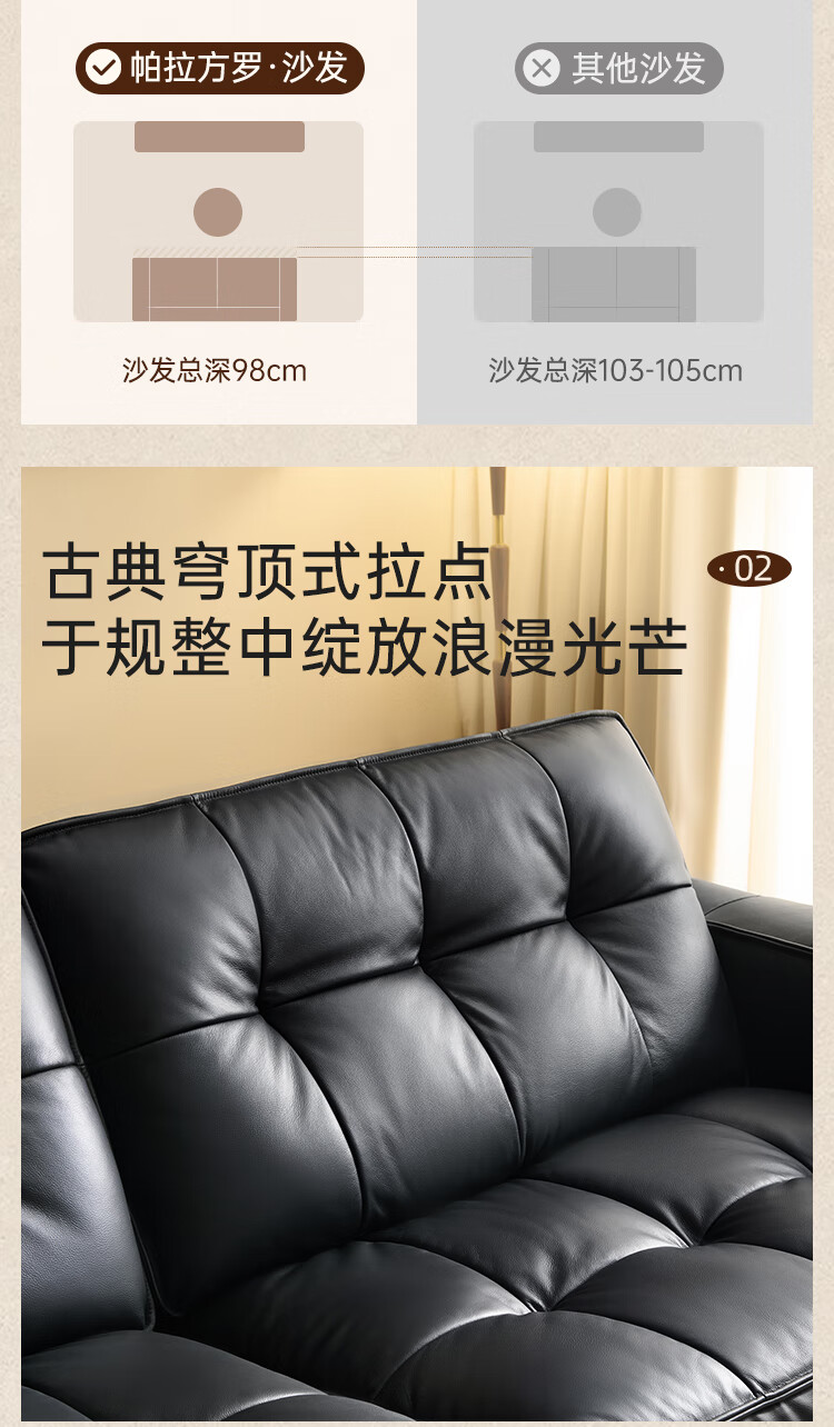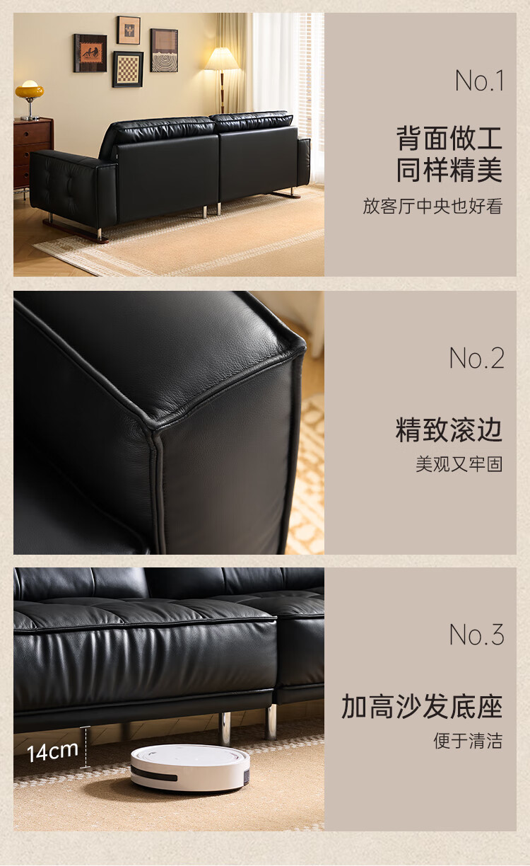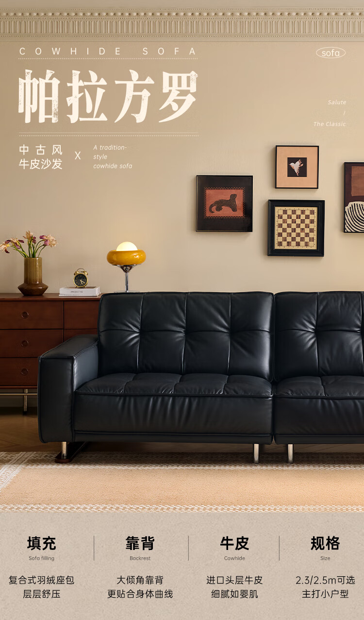 全友家居中古风小户型头层牛皮沙发客厅家用2025新款一字直排沙发家具 【牛皮】2.58m沙发 羽绒座包+5层好料+59cm座深