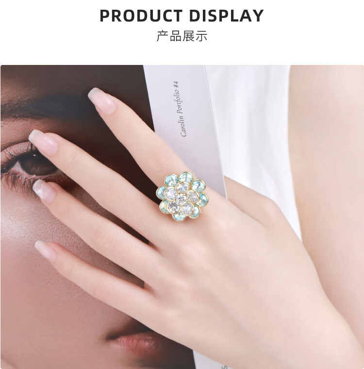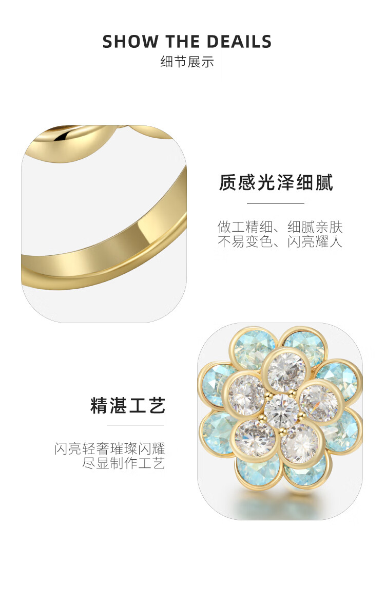 XUPING旭平首饰旋转花园女戒指送生日礼物七夕情人节 Tiffany蓝色 6#