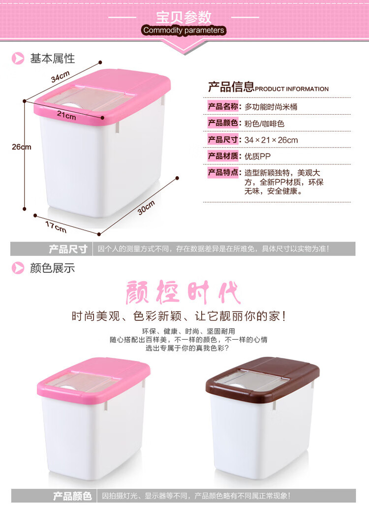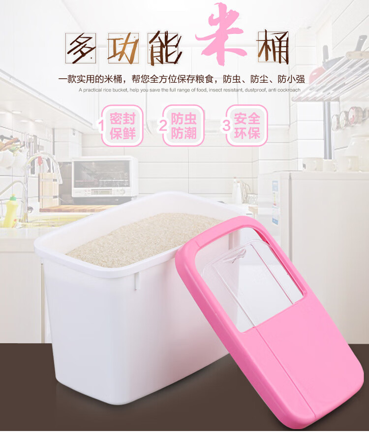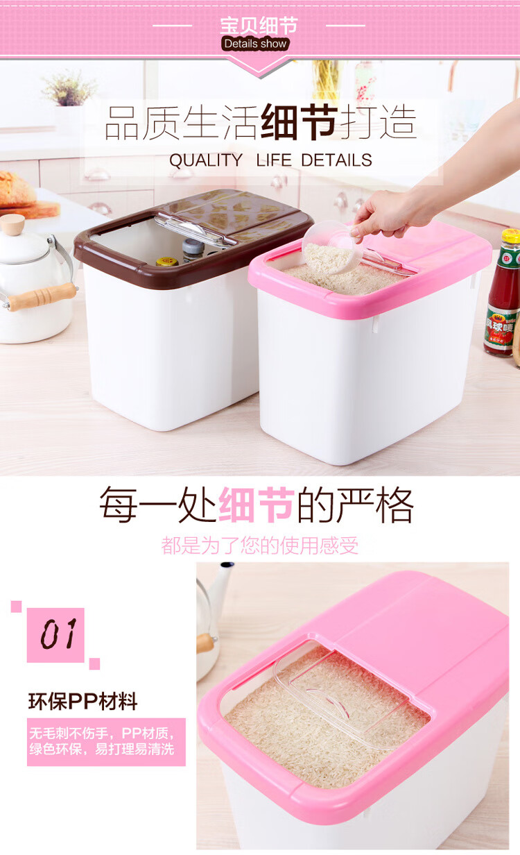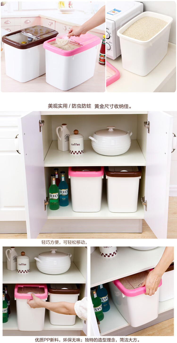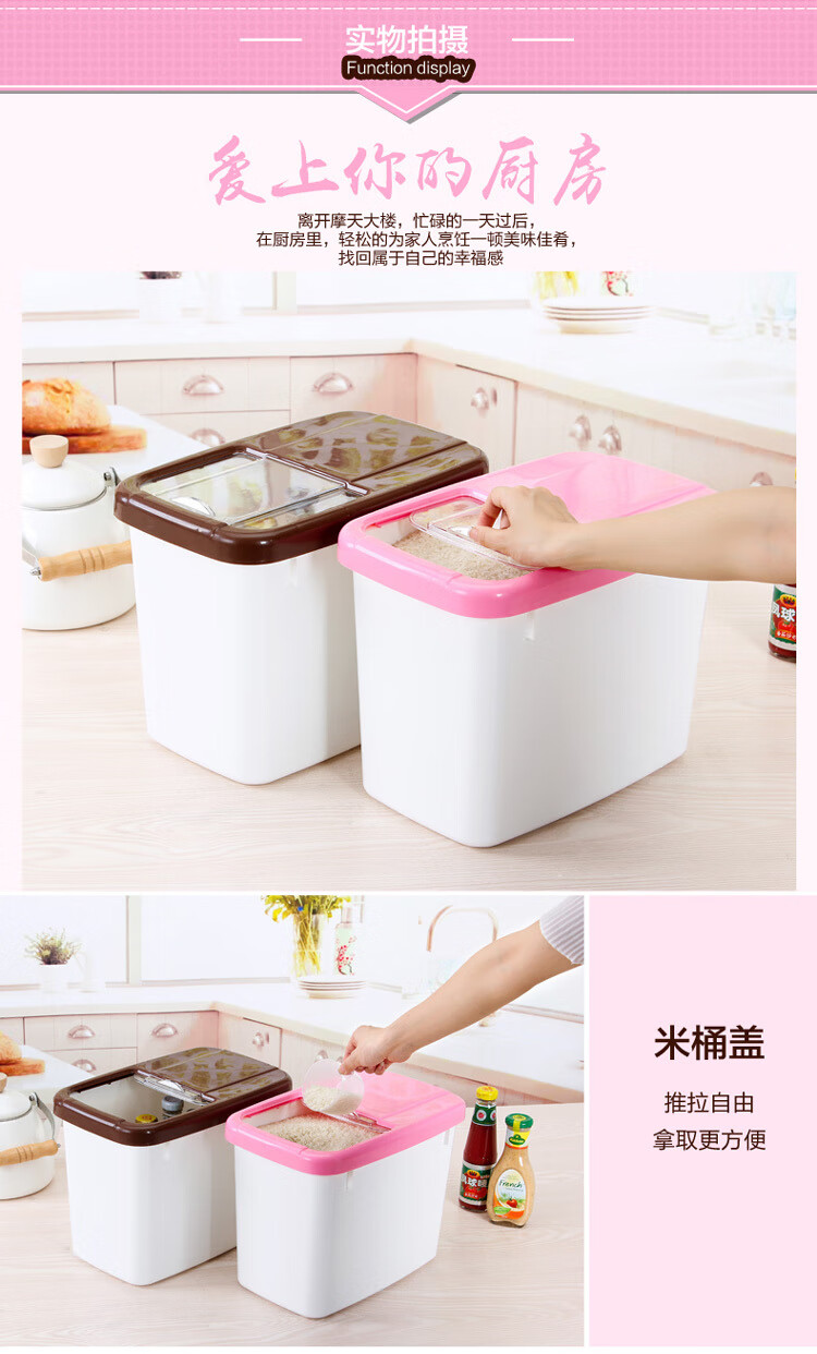 DEATKN米桶塑料储米箱米缸面粉桶防虫防潮加带盖20斤10kg厨房15斤储物盒 咖啡30斤装-带轮子