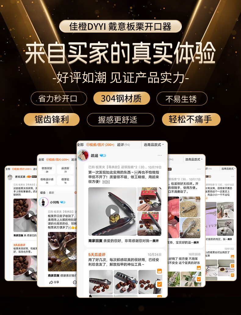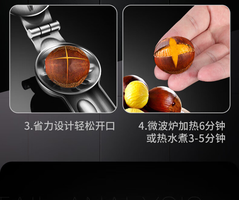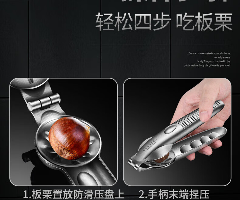 DEATKN德国板栗开口器全自动款糖炒栗子开口机扳栗票子开板栗自动回弹夹 板栗夹【尊典款】送钢指套*2(304不锈钢材质)