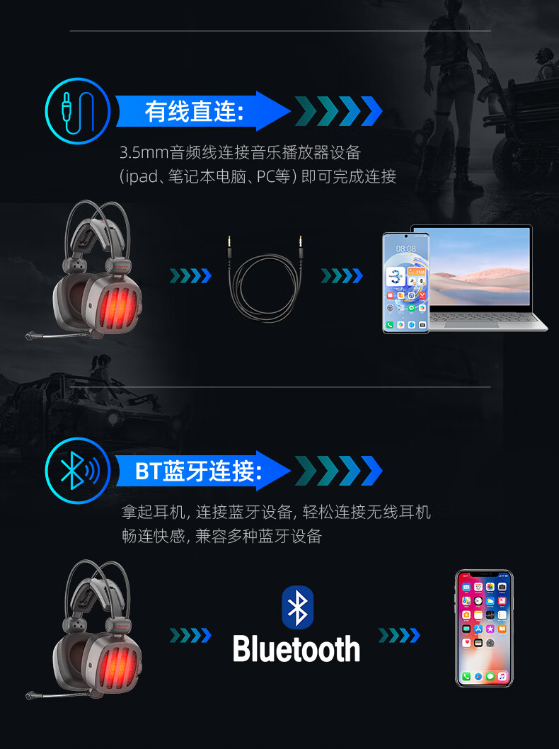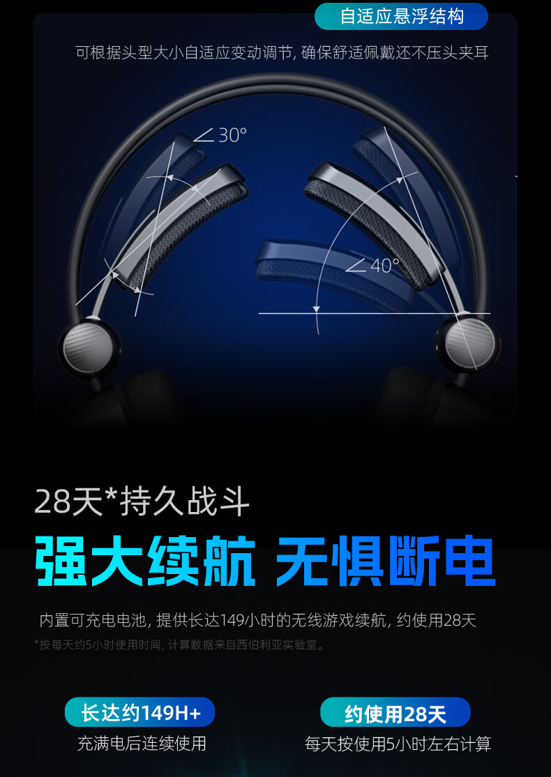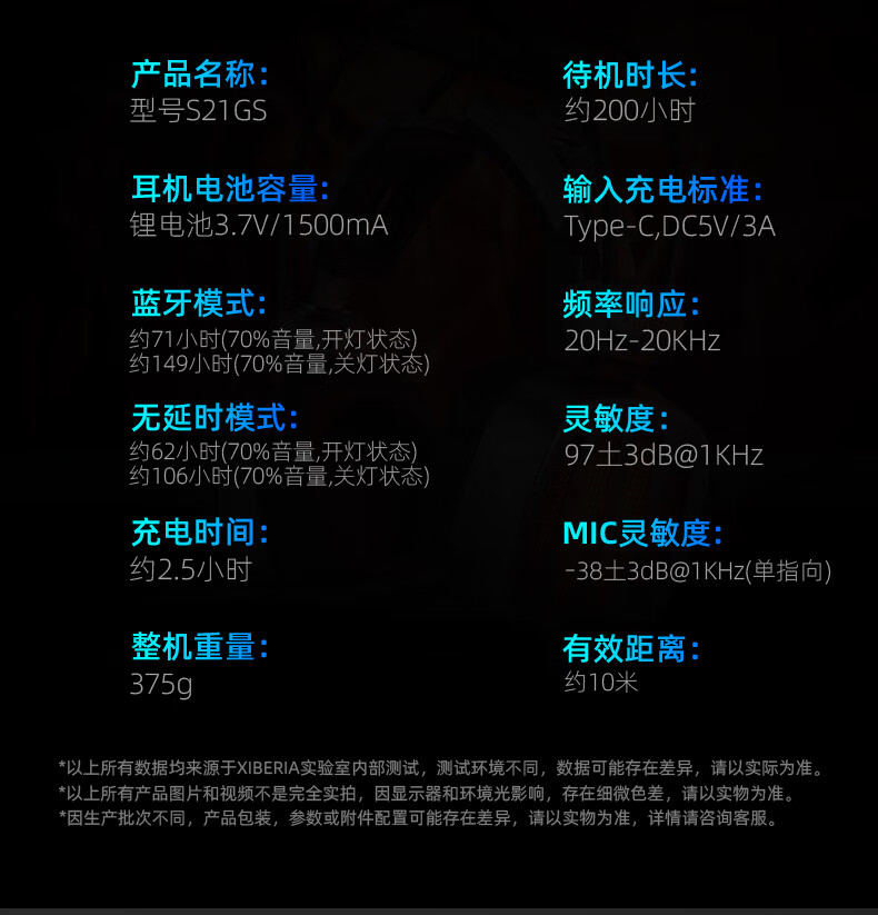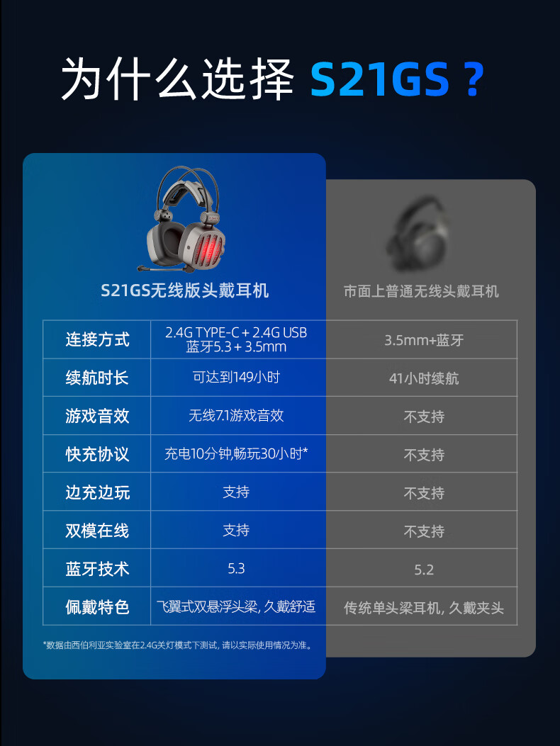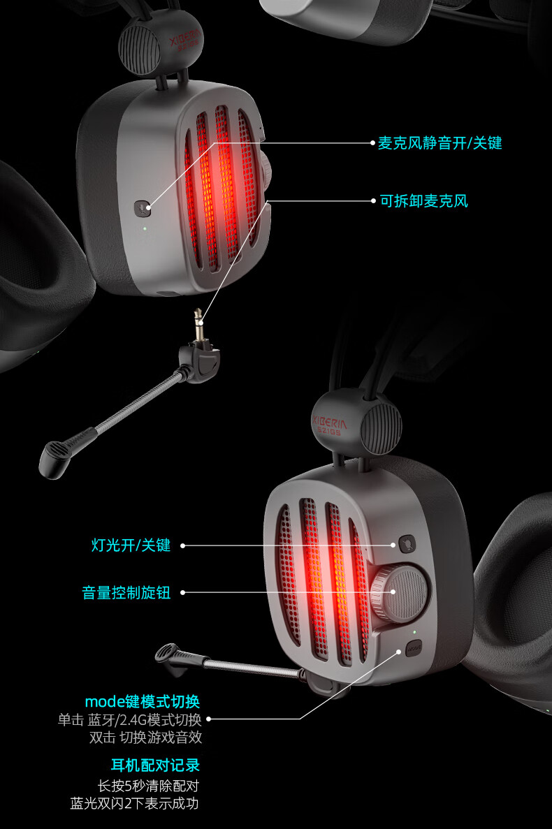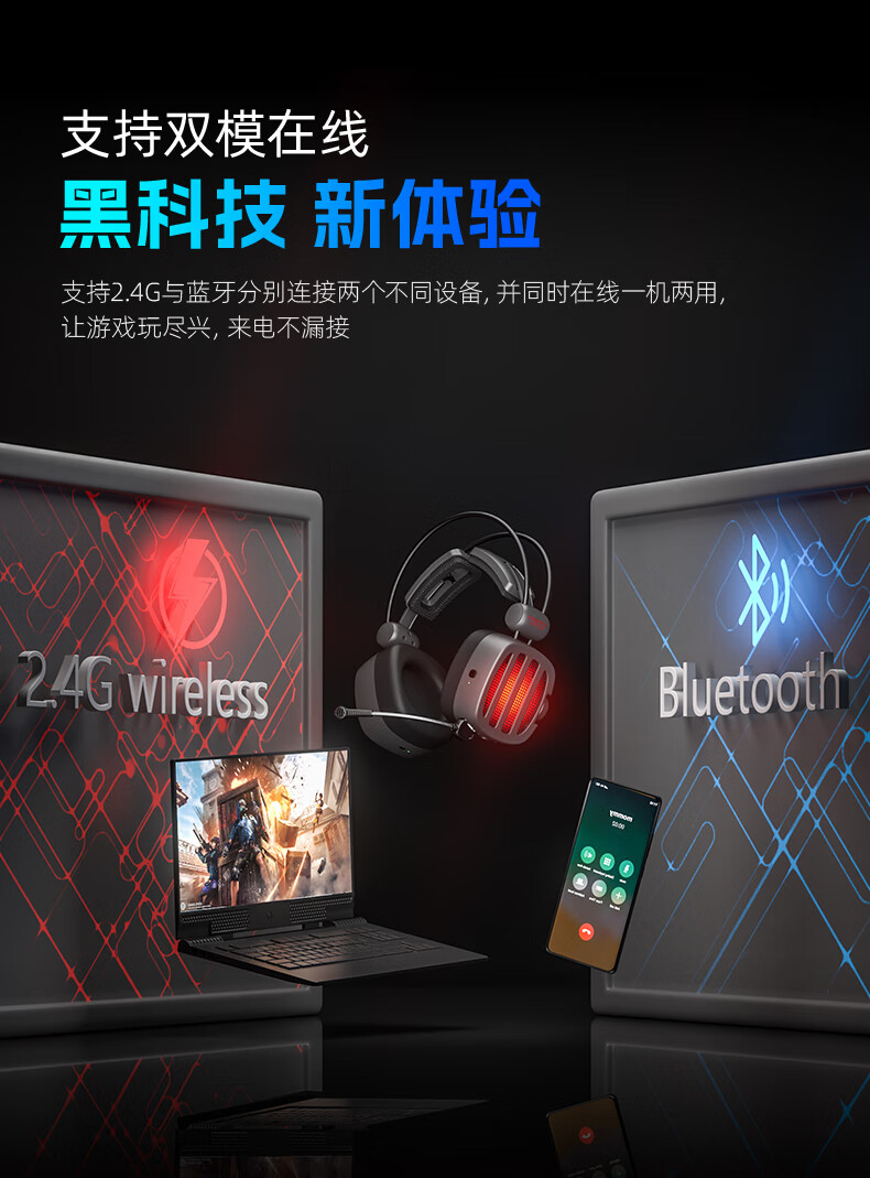 西伯利亚(XIBERIA)S21GS 2.4G四模无线游戏耳机头戴式 电脑电竞蓝牙耳麦 7.1声道不求人主播吃鸡听声辨位绝地求生 S21GS铁灰【2.4G无线四模】