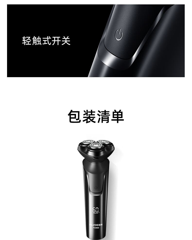 飞科(FLYCO)电动剃须刀旋转式男士刮胡须刀快充FS903生日礼物送男友送老公送父亲