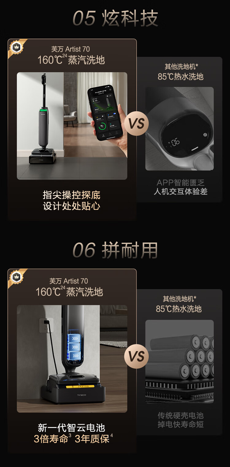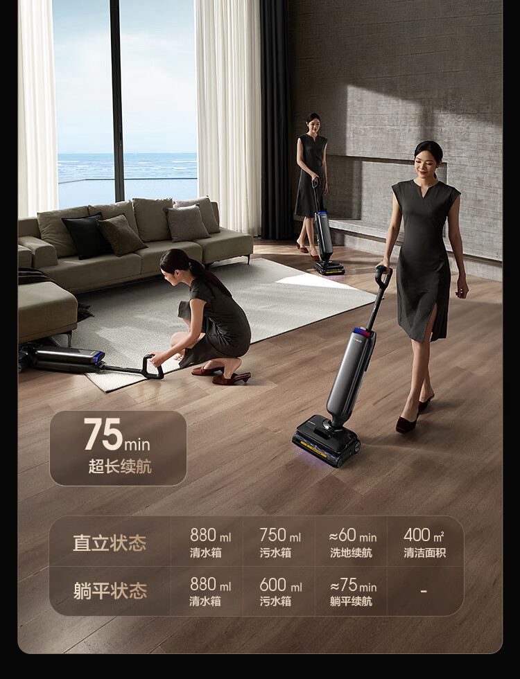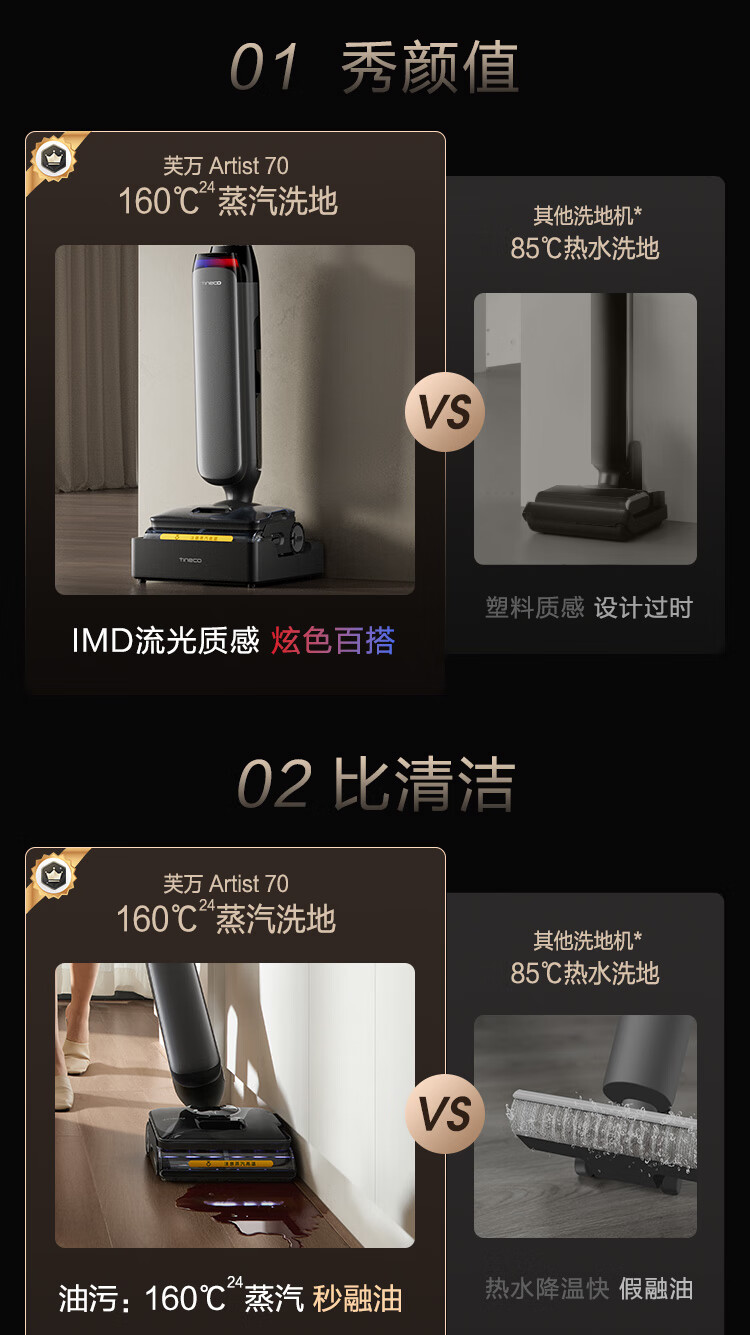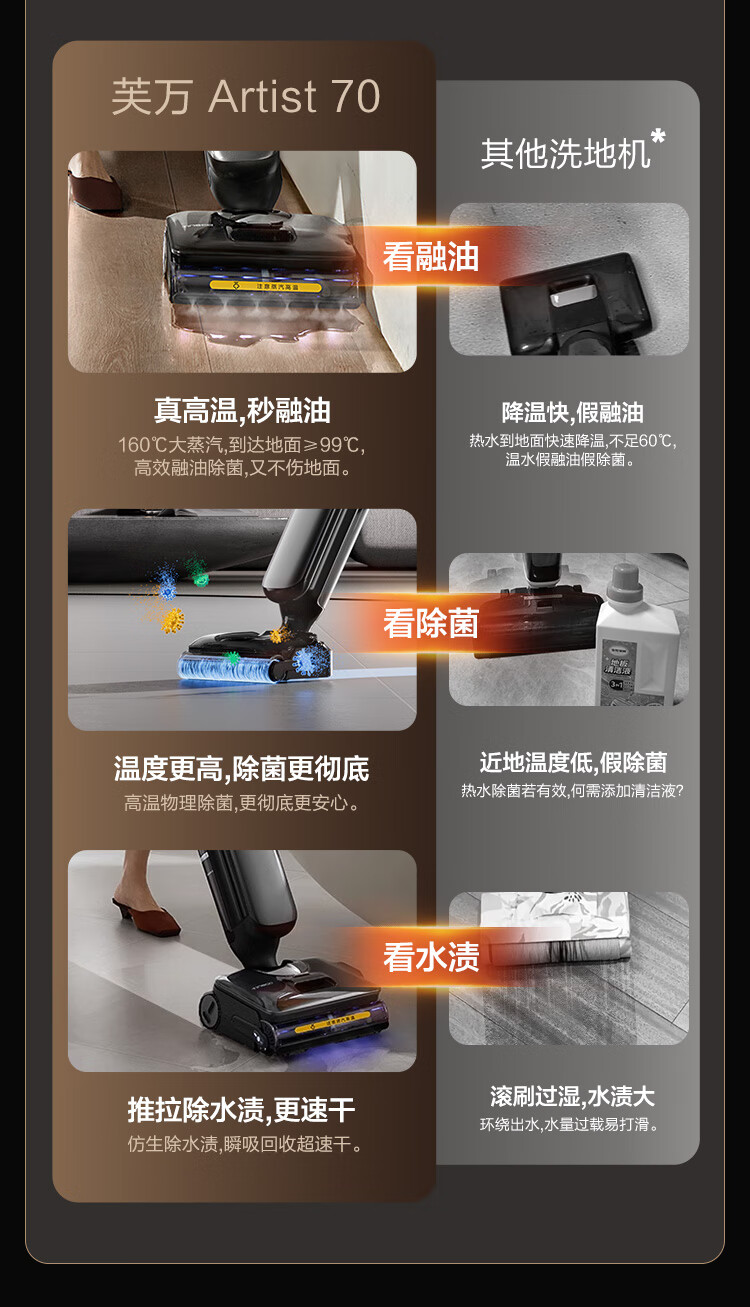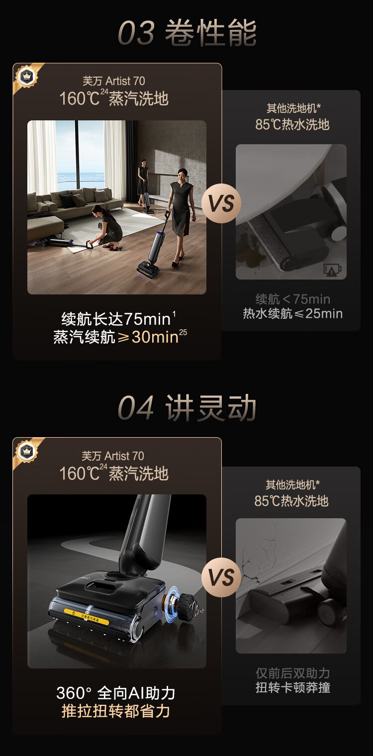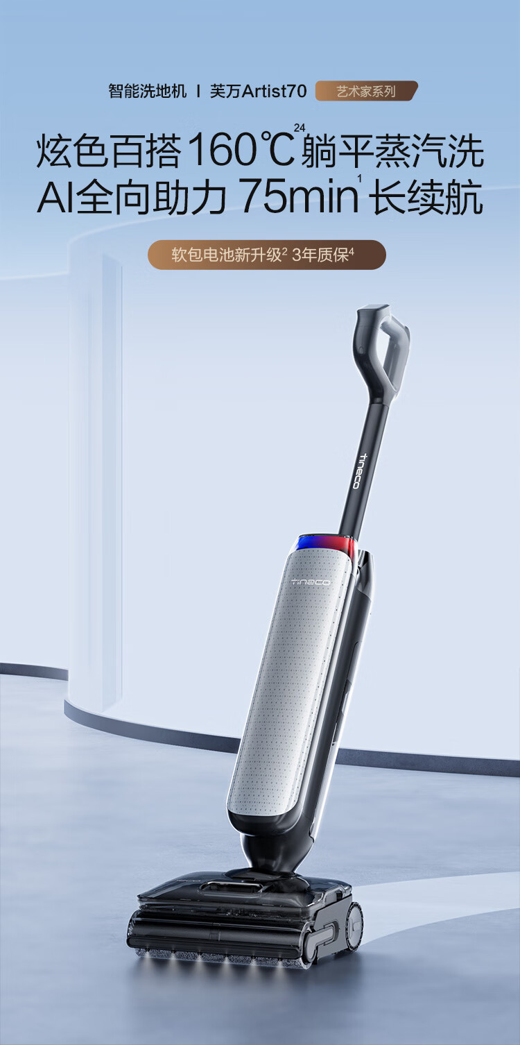 添可芙万Artist70艺术家AI助力【75分钟续航躺平160℃蒸汽洗0缠毛】洗地机自动清洗吸拖一体拖地机器人