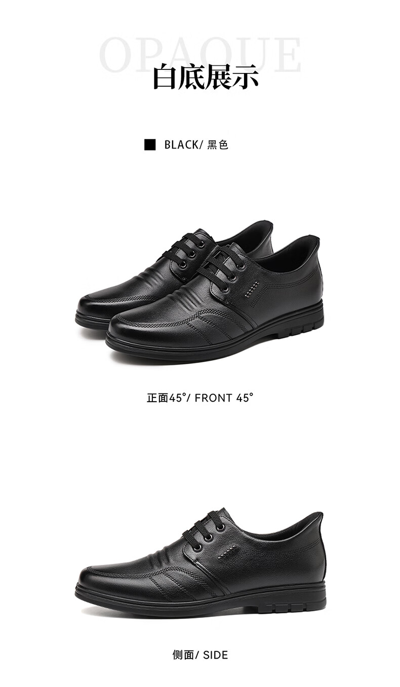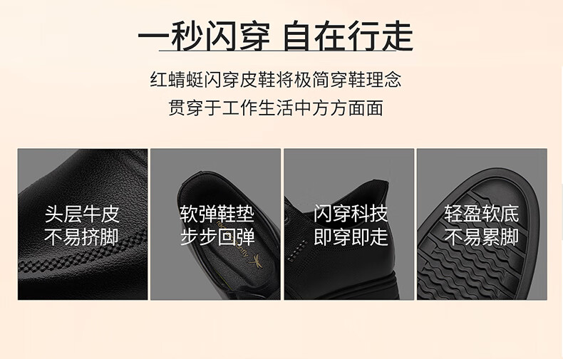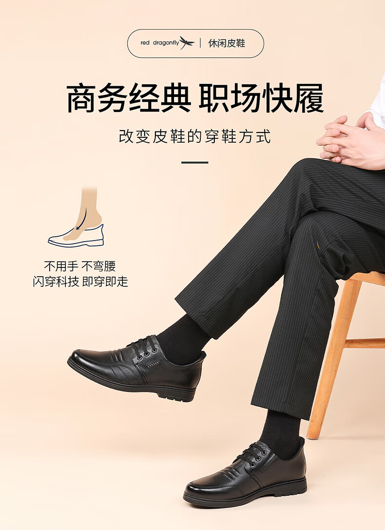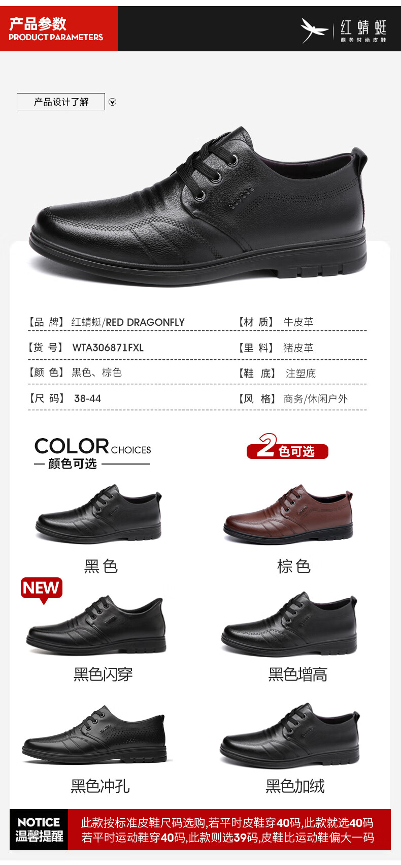 红蜻蜓男鞋平底秋冬牛皮休闲鞋男圆头商务正装皮鞋男WTA306871黑色41