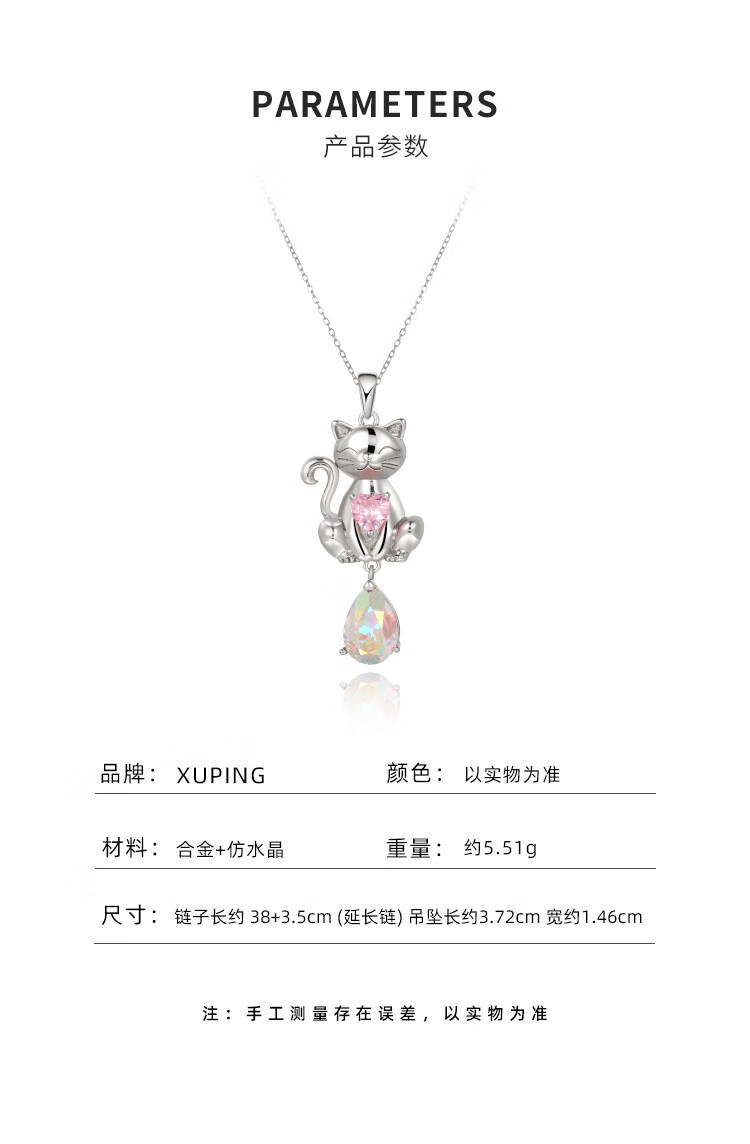 XUPING旭平首饰萌宠小猫 女生项链百搭送生日礼物 女项链 约40+5cm