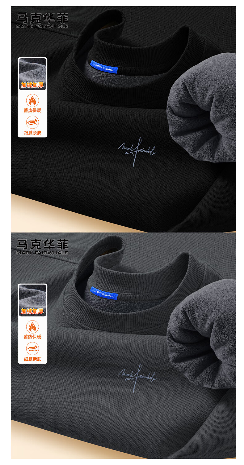 马克华菲男士秋冬卫衣加绒重磅保暖圆领上衣男款2025新款休闲加厚外套男